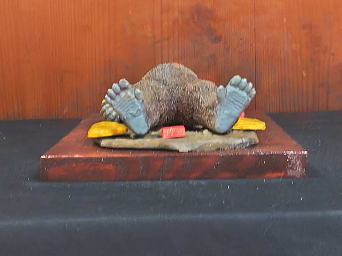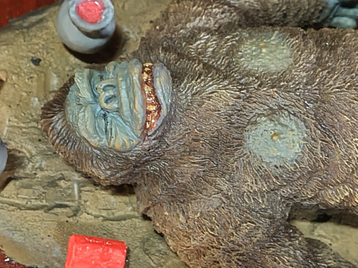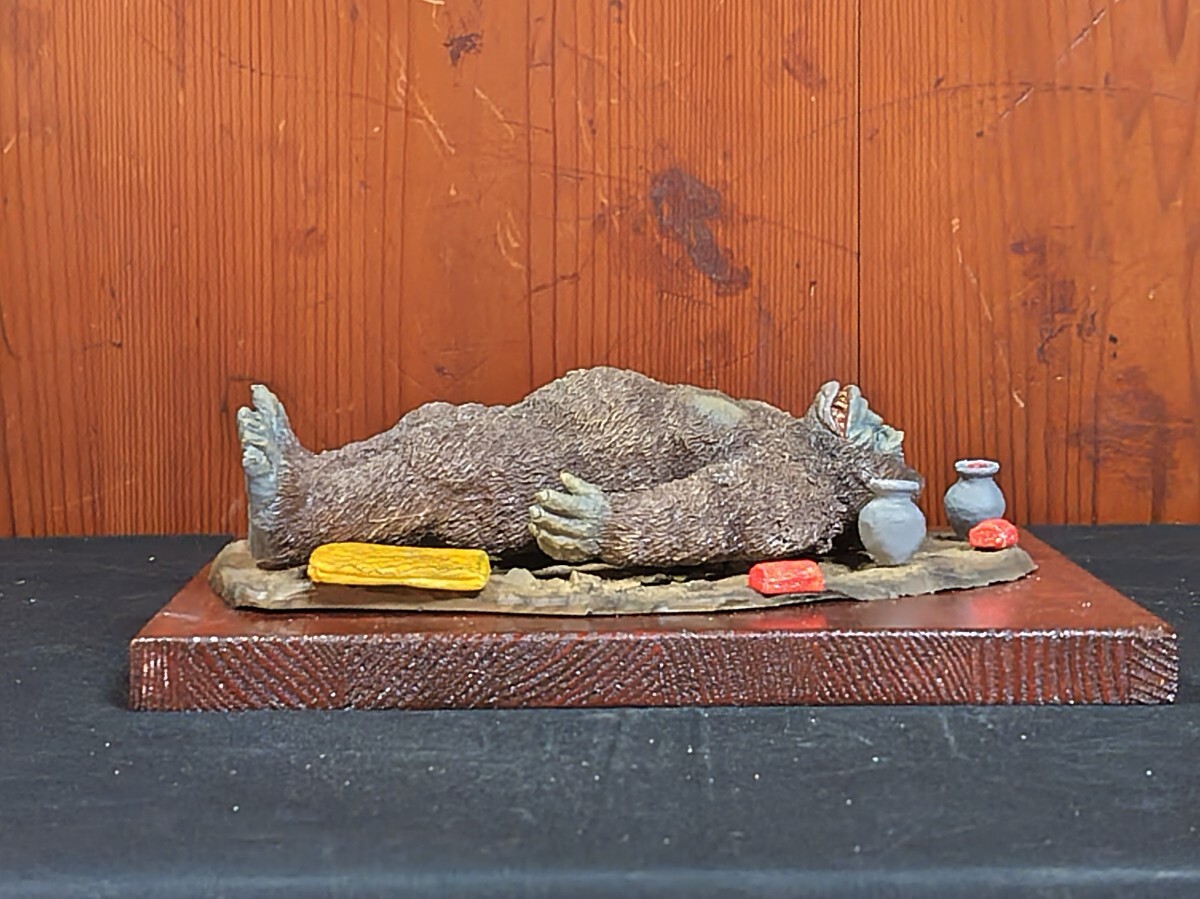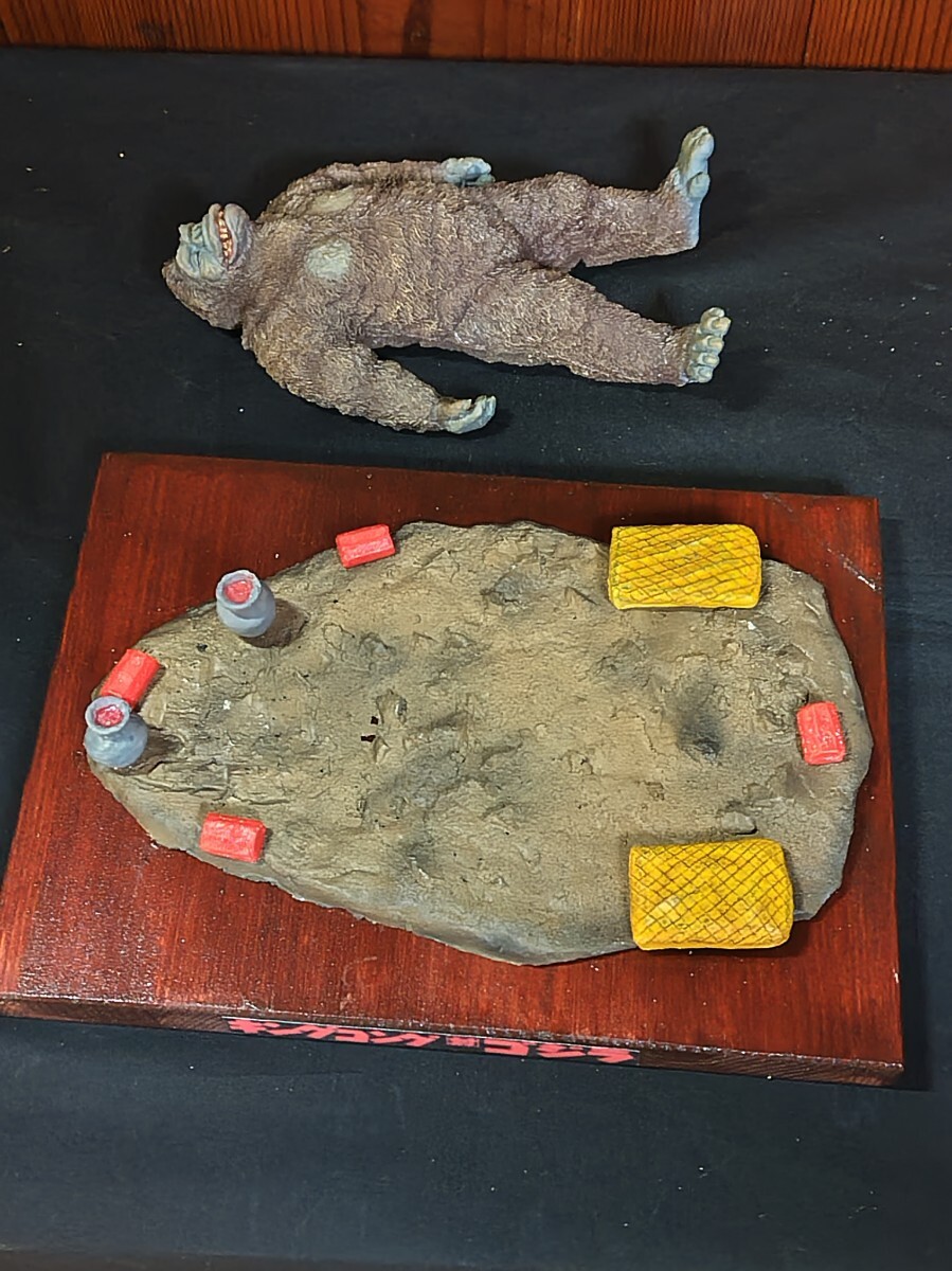 【★メーカー不明、(キングコング対ゴジラ)よりキングコング輸送大作戦・レジンキャストキット完成品。サイズ・ キングコング全長約20センチ、他社レジンキットベース完成品取り付け済木製ベース255mm185mm、◆尚、組立塗装後、商品箱、説明書、完成品見本写真は処分した為付属しておりません。悪しからずご了承下さい。リーズナブル価格よりスタートさせて頂きます。尚、レジンベースと小物類は木製ベースに固定してありますがキングコングは輸送中の破損を考慮してベースには取り付けてありません。落札者様自ら配置の方をよろしくお願いします。