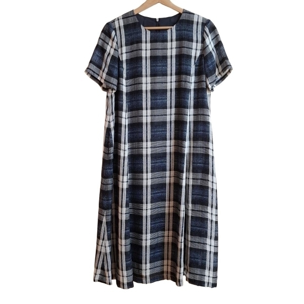 デザイン:クルーネック/半袖/ロング/チェック柄