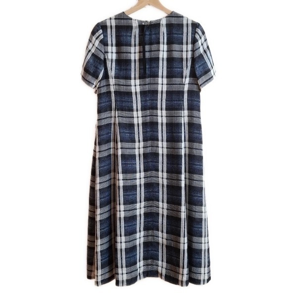 レリアン Leilian サイズ11 M - ダークネイビー×白×黒 レディース クルーネック/半袖/ロング/チェック柄 美品 ワンピース