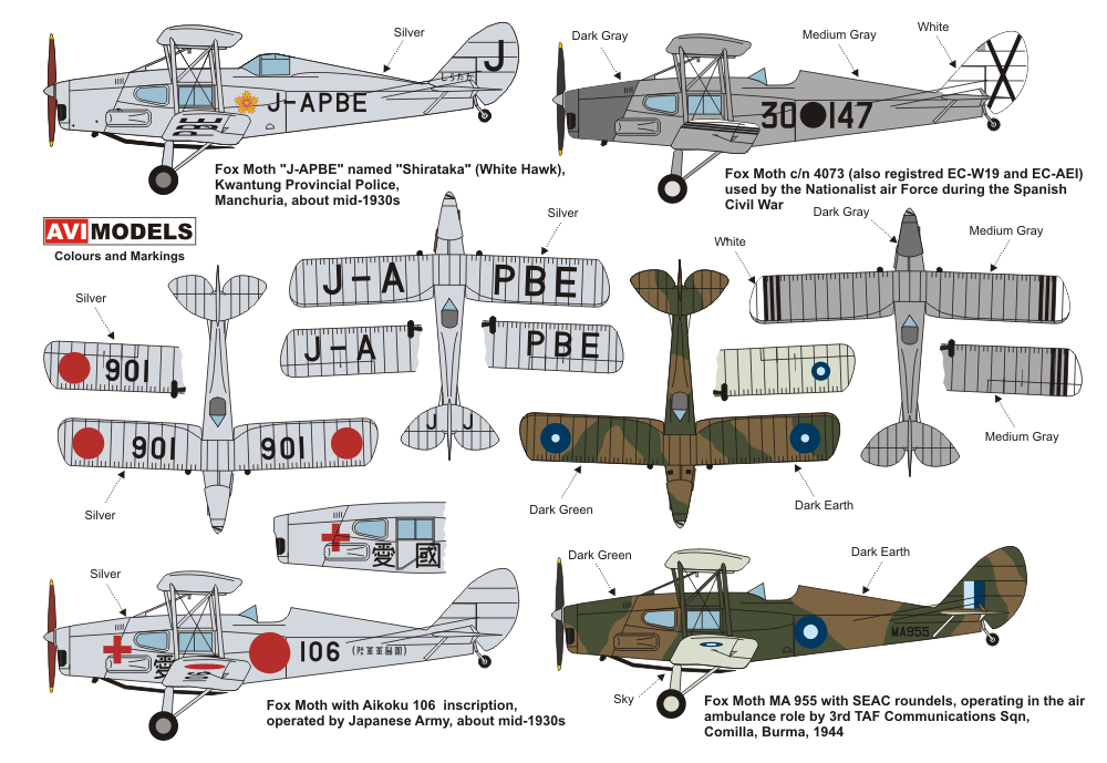 | デハビランドD.H.83フォックスモスのインジェクション・キットです。 マーキングデカールは「満州国」関東州警察/陸軍「愛國-106(陸軍軍醫團号)」/スペイン・ファシスト軍/イギリス空軍。 風防はインジェクションです。1/72スケール。新品です。AVI72010 | |||