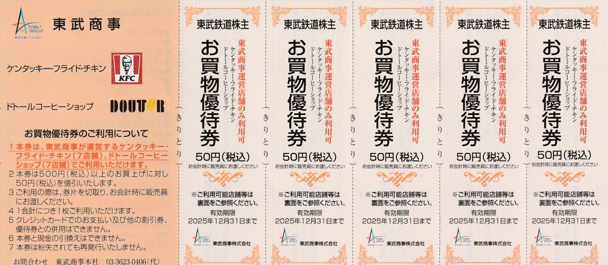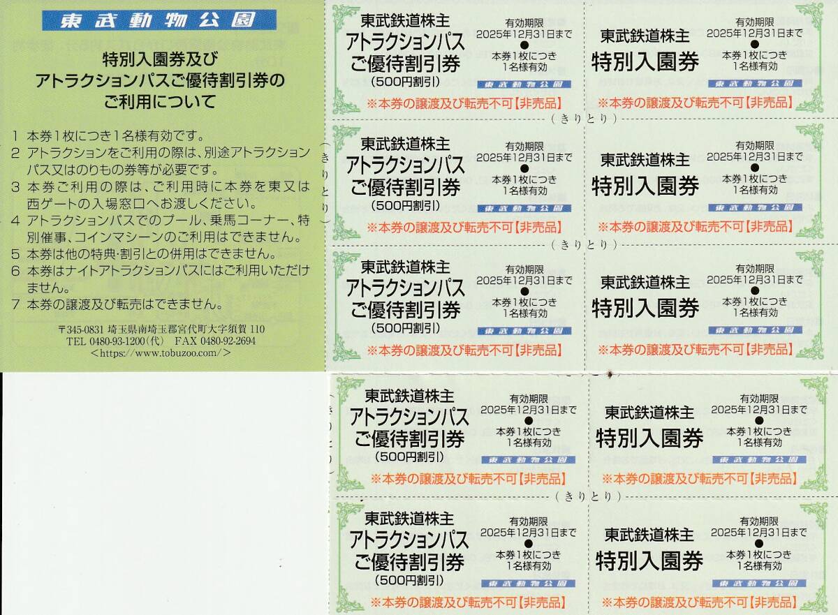 ●東武動物公園 特別入園券+ライドパスご優待割引券の各5枚セットです。 ●有効期限は2025年12月31日までです。 ●入札価格は入園券+ライドパス割引券各5枚セットの価格です。 ●お支払金額は、落札価格+送料になります。 ●おまけとしまして、KFC・ドトールコーヒーショップお買物優待券5枚+東武商事運営店舗お買物優待券5枚+東武博物館特別入館券(有効期限2025年12月28日まで)5枚をお付けします。 | ||