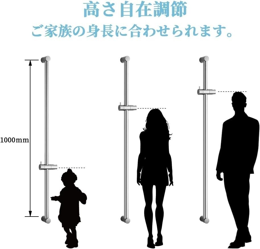 OFFO シャワースライドバー 長さ1000㎜ スライドバーの設置距離は600mmから1000mmまでに調整可能です。