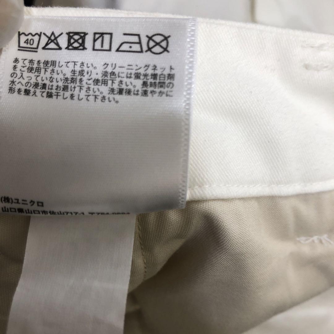 ホワイトのカジュアルパンツ、ウエスト64cm、股下68cm。