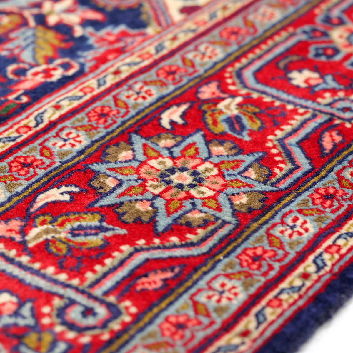 ハマダン絨毯らしい太めのパイルとしっかりとした織りで、耐久性と実用性に優れています。クラシカルなメダリオン構図は重厚なインテリアや木製家具との相性も良く、空間に落ち着いた存在感をもたらします。