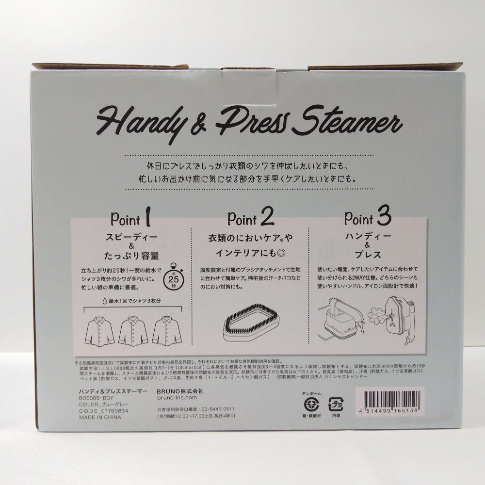 B25-2037【開封済/未使用】BRUNO ブルーノ BOE085-BGY ハンディ&プレススチーマー ブルーグレー 2WAY衣類スチーマー ※通電確認済
