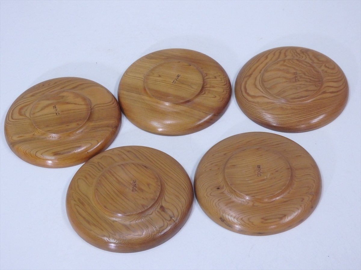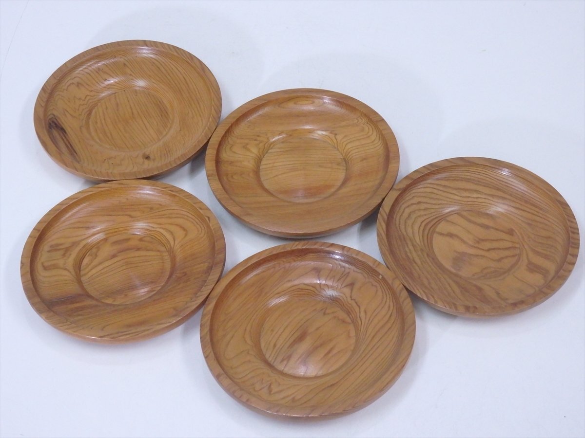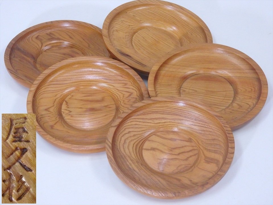 ★状態良好!【屋久杉 茶托5枚】直径11.7cm 高さ1.6cm 口径5cm 茶道具 茶器 中国茶器 煎茶道具 和食器