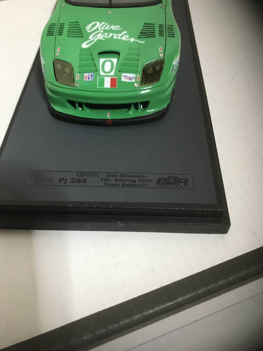 1/43 BBR-MODELS - FERRARI - 550 MILLENNIO TEAM RAFANELLI OLIVE GARDEN N 0 12h SEBRING 2002 Team Rafanelli 米本工房です。紙箱は無く画像のプラケースのみです。プラケースに擦れ傷がありますので完璧を求める方には向きません。本体は画像のように美品です。新規を含む総合の評価が10以内の方と悪い評価が3以上ある方の入札はお断りいたします。