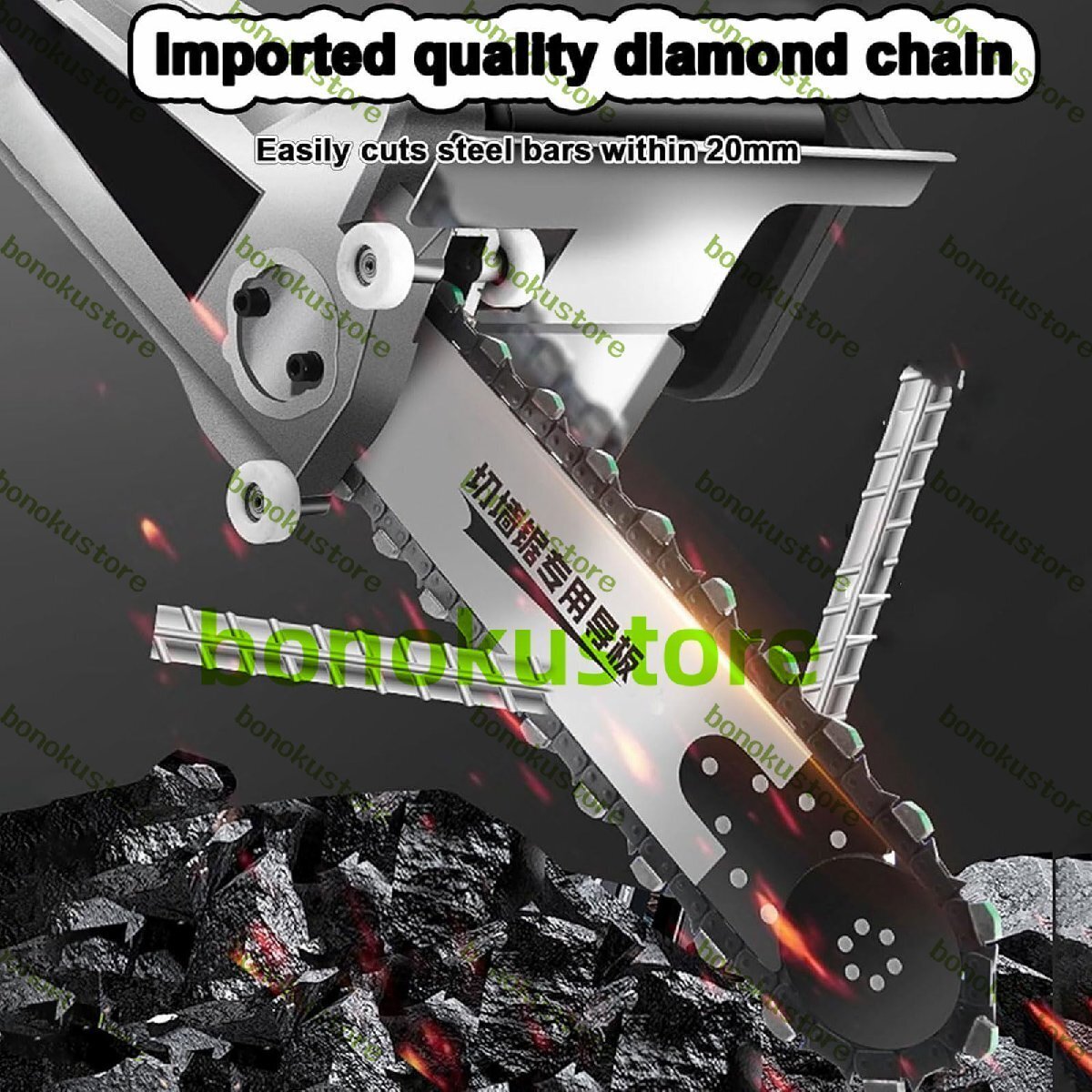 高効率:電動ダイヤモンドチェーンウォールカッターは、さまざまな材料と角度を自由に切断でき、最大350mm / 480mm(13.77インチ / 18.89インチ)の切断深さで、3分で2メートルを切断できます。三次元循環、放熱が速く、稼働時間が長い 純銅モーター: ハンドヘルド電動チェー