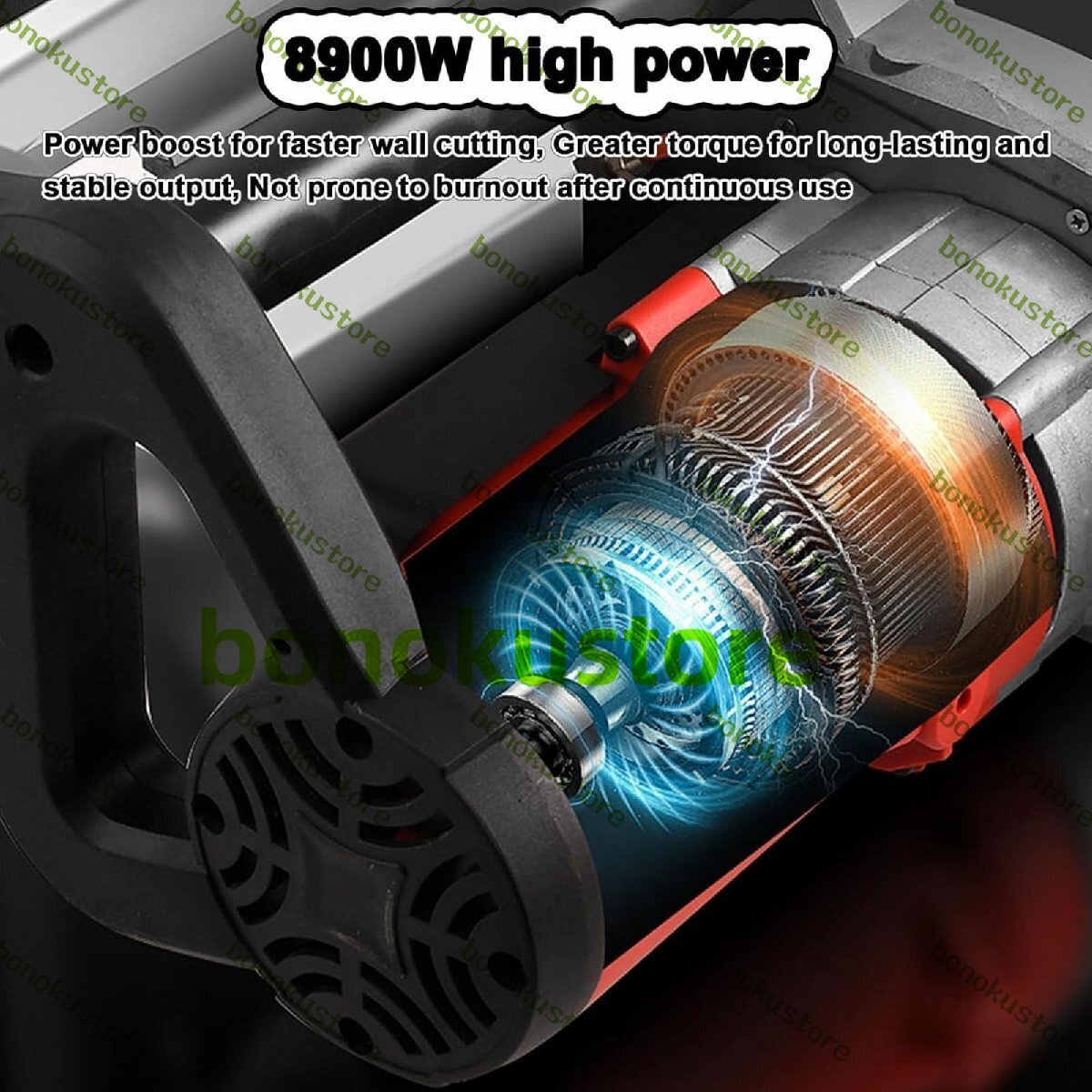 純銅モーター: ハンドヘルド電動チェーンソー壁カッターは、8900W 純銅ブラシレスモーターと太い耐高温銅線を採用しており、強力で止まりません。速度は最大7280rpmで、火花なしで切断が簡単で、損失が少なく、安定した操作で、時間と労力を節約できます。