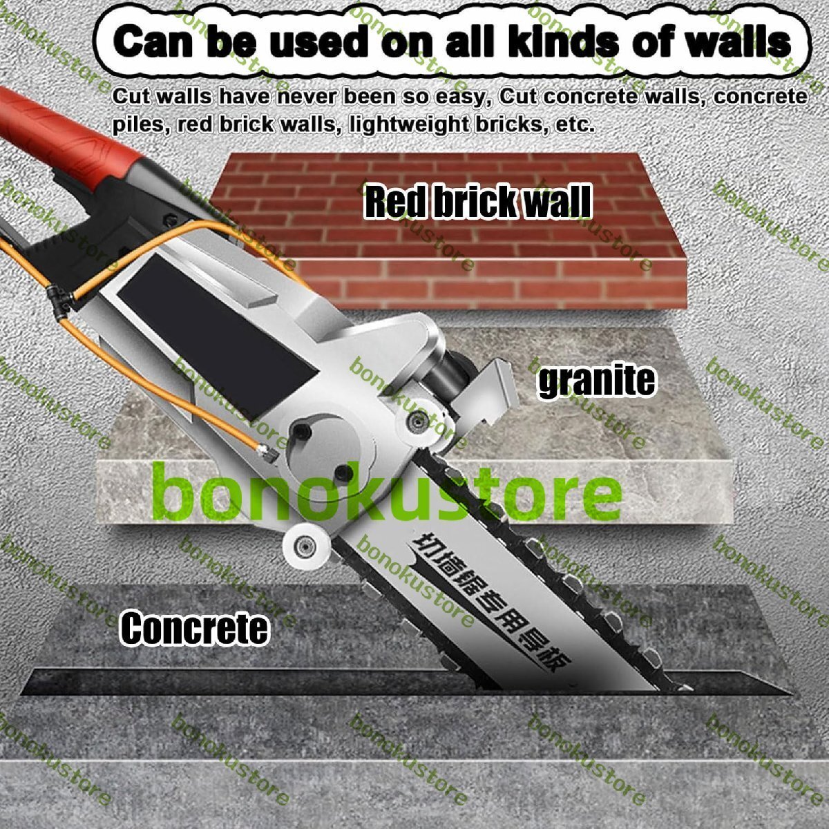 適用範囲:この電動チェーンソー壁切断機は、さまざまな壁に穴を開けるのに適しています。壁がどんなに硬くても、簡単に切断したり溝を彫ったりすることができます。花崗岩、鉄筋コンクリート、赤レンガ壁、セメント壁など、さまざまな材料を切断できます。