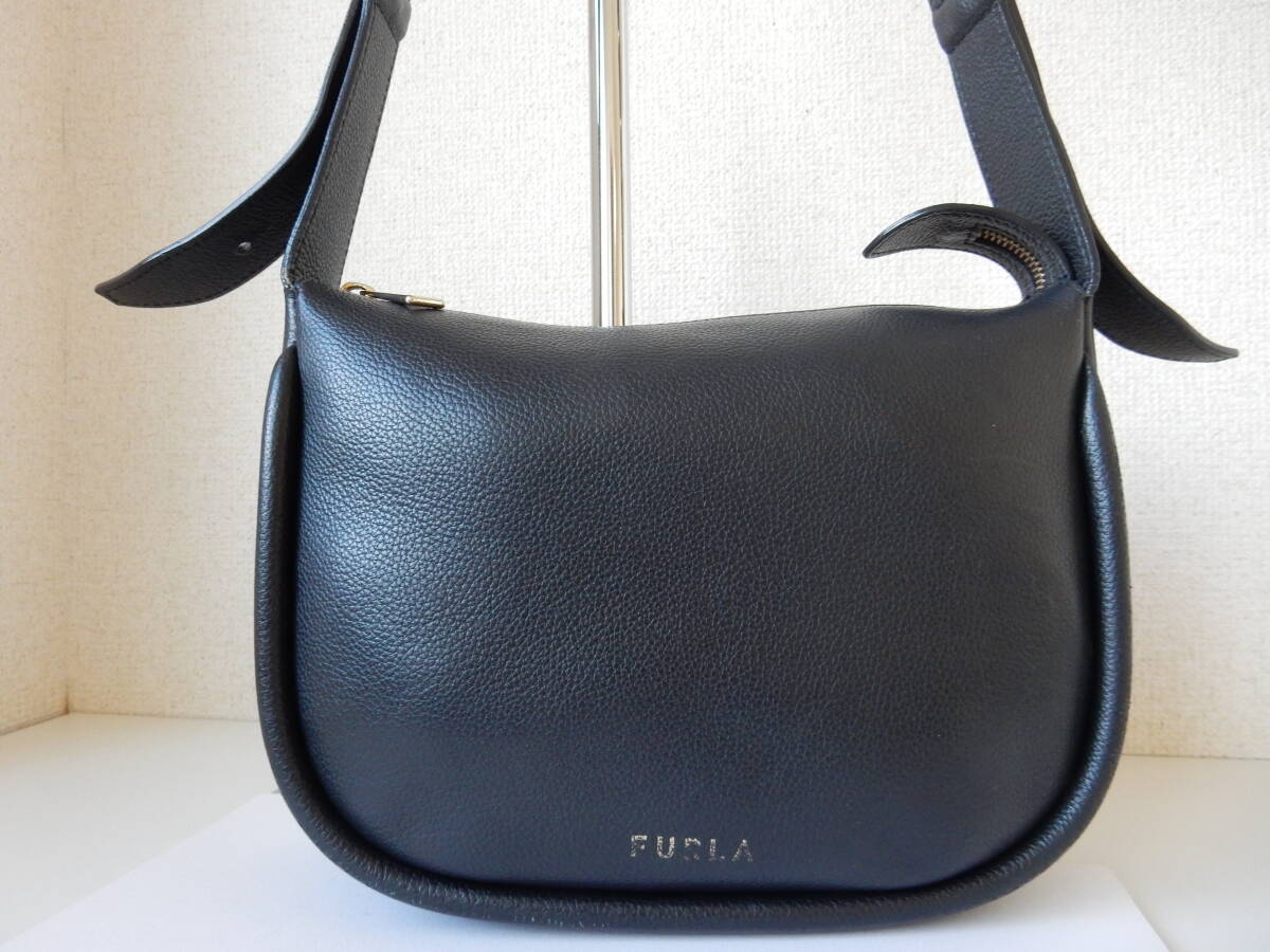 イタリア製☆本革☆FURLA(フルラ)☆斜め掛けOK☆ショルダーバッグ ブラック(金具ゴールド)