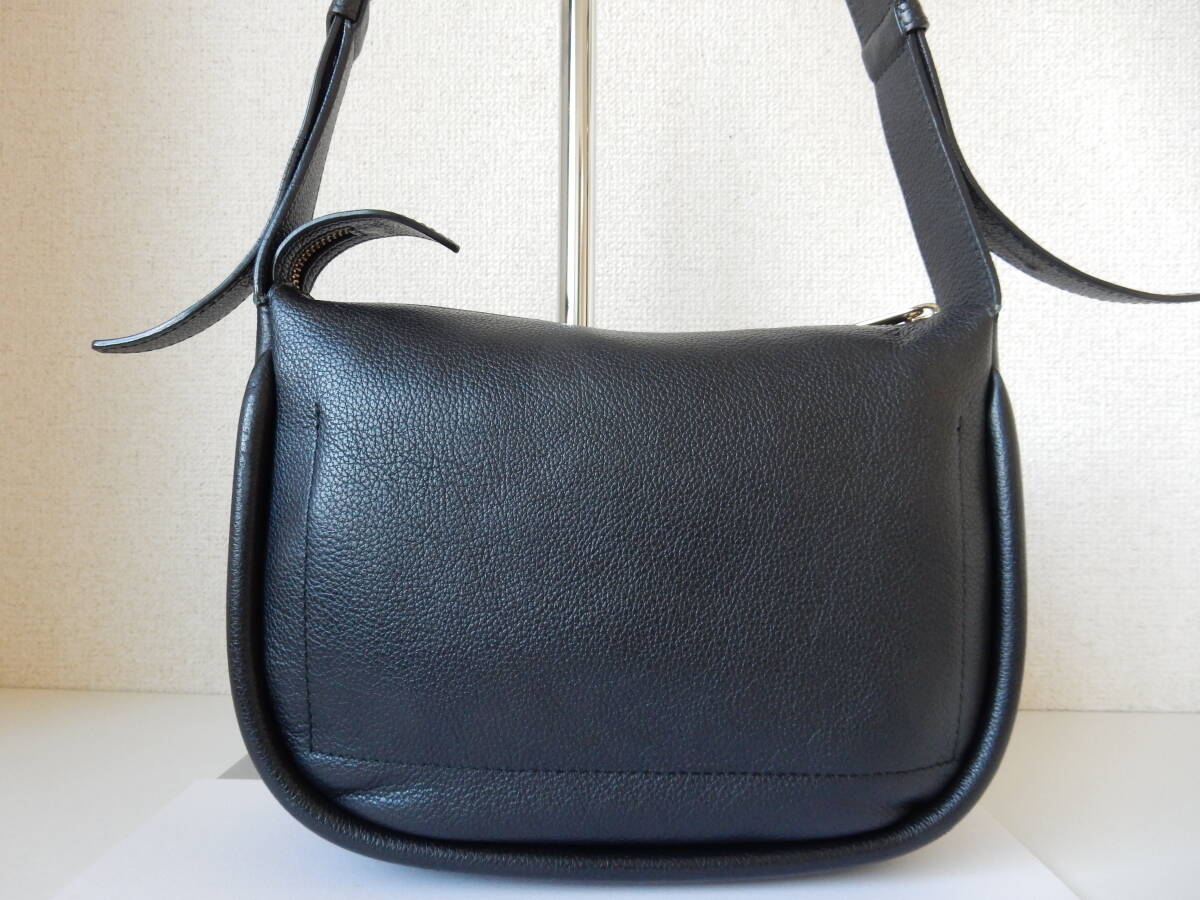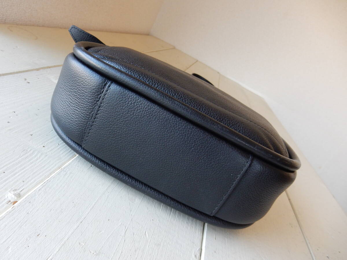 丸みを帯びたフォルムにフロントロゴがアクセントとなった本革ショルダーバッグ。