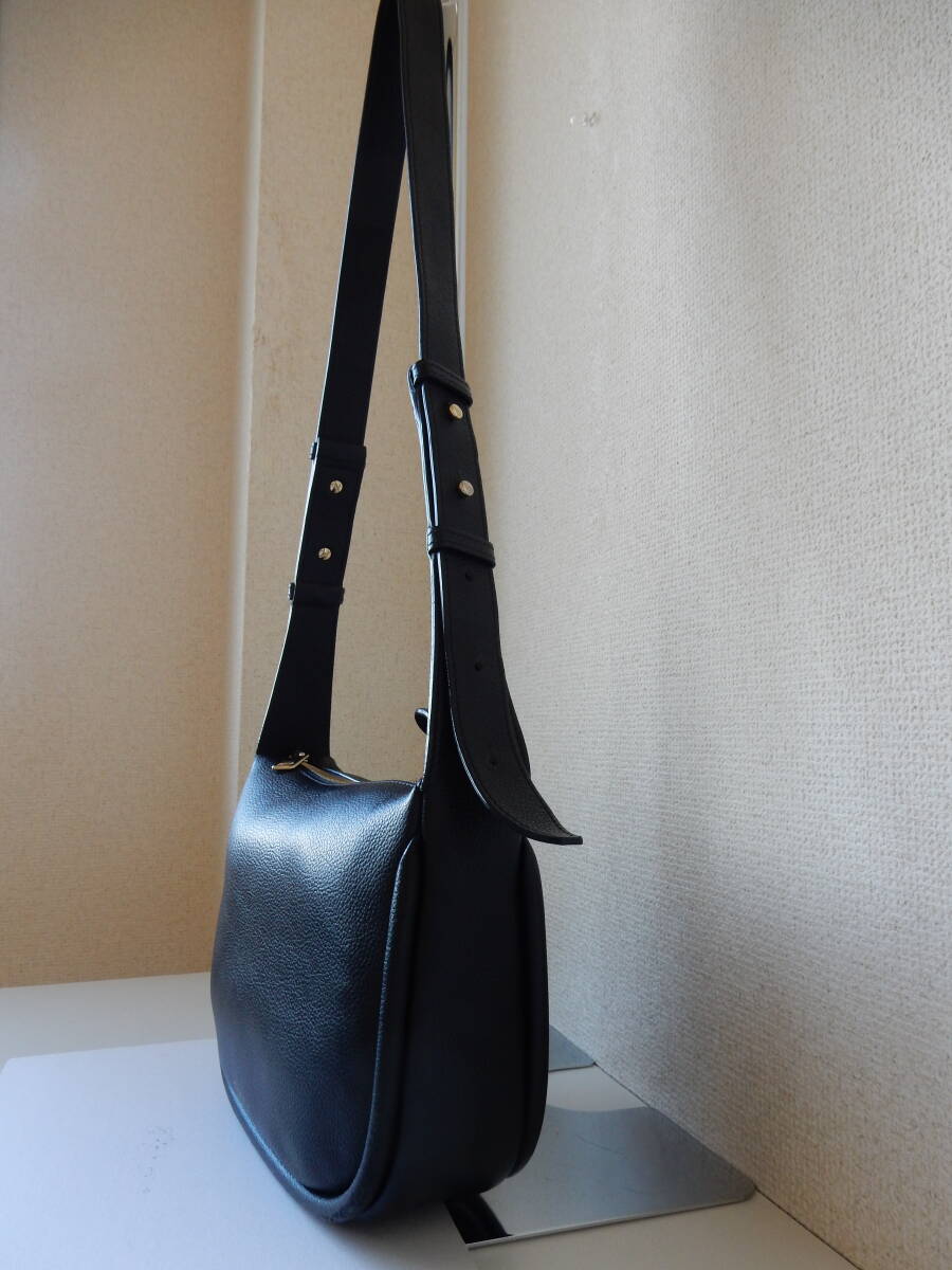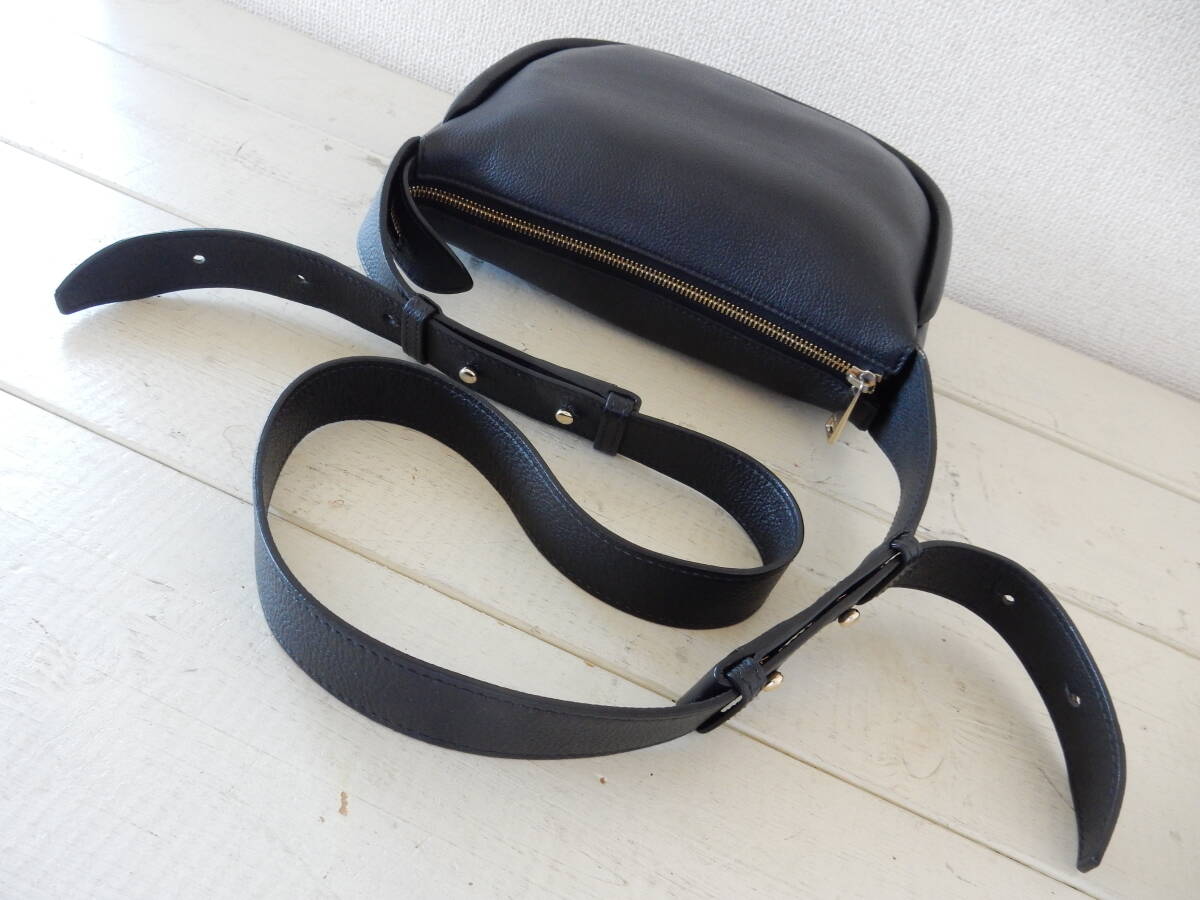 ショルダーベルトは5段階長さ調節ができ、斜め掛けスタイルにもできます。
