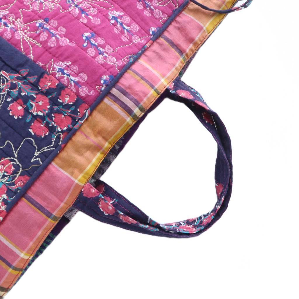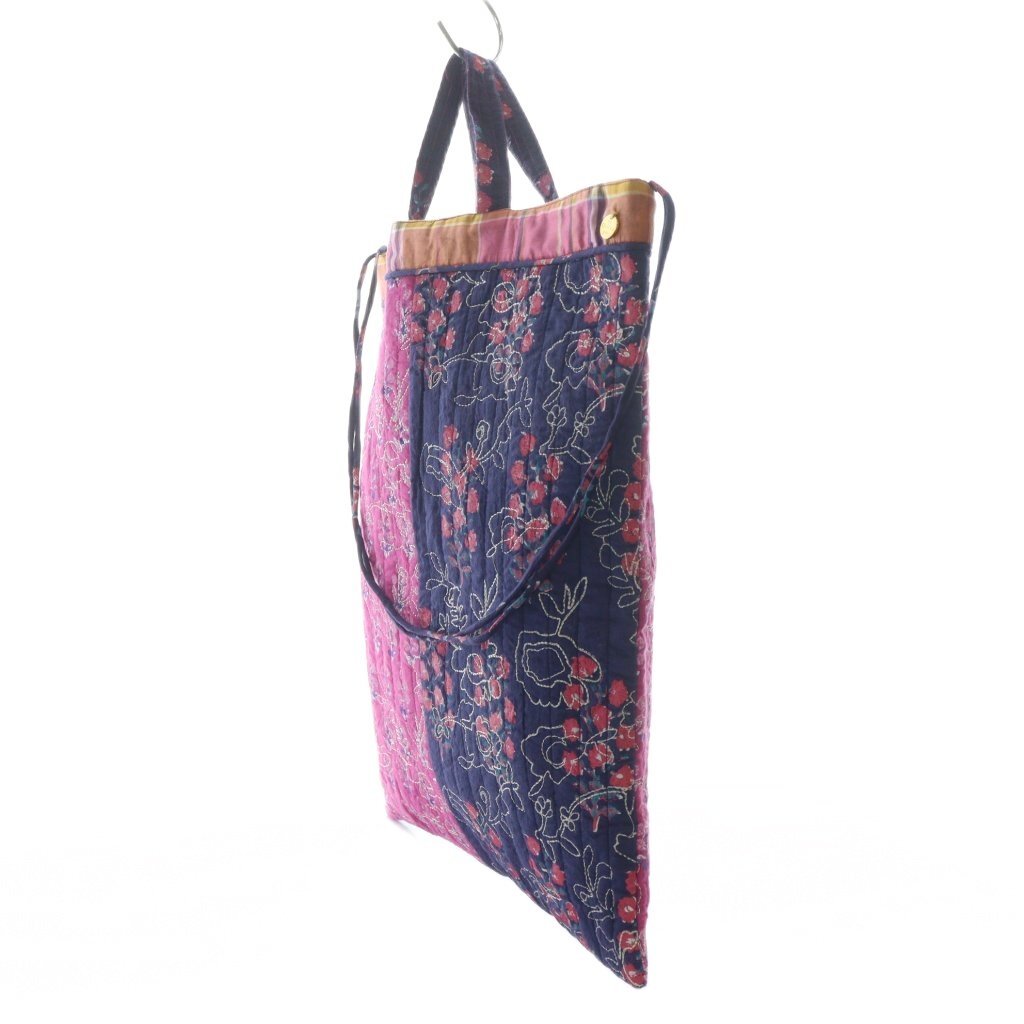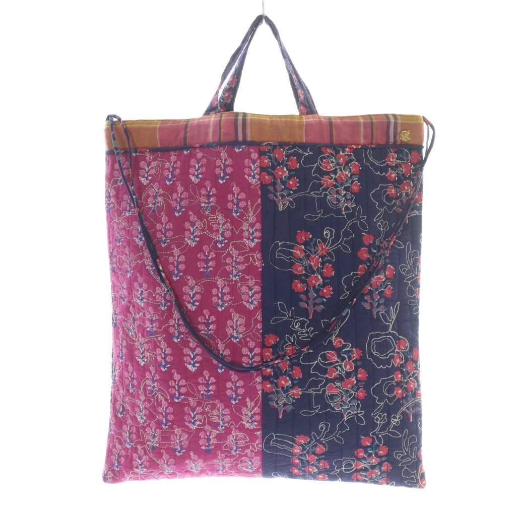 ヌキテパ NE QUITTEZ PAS! キルティングパッチワークトートバッグ 2way ハンド 刺繍 花柄 チェック ピンク ネイビー ■SH