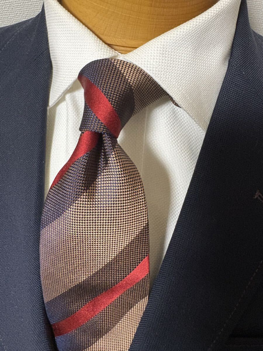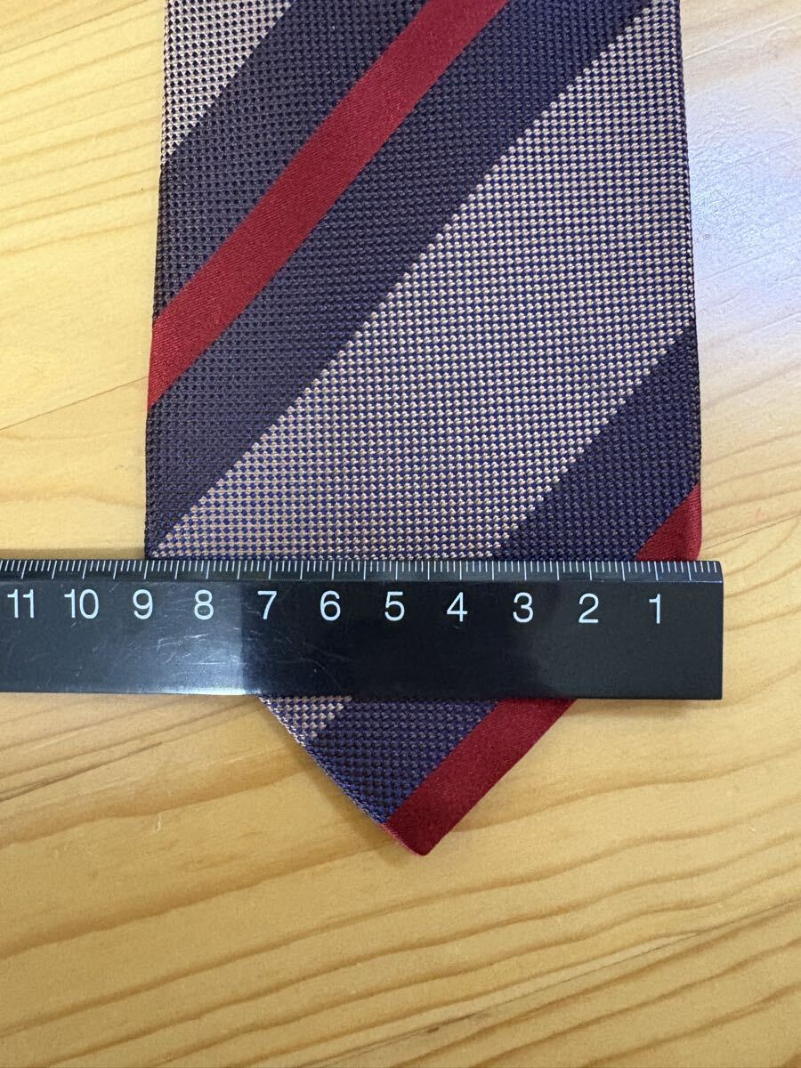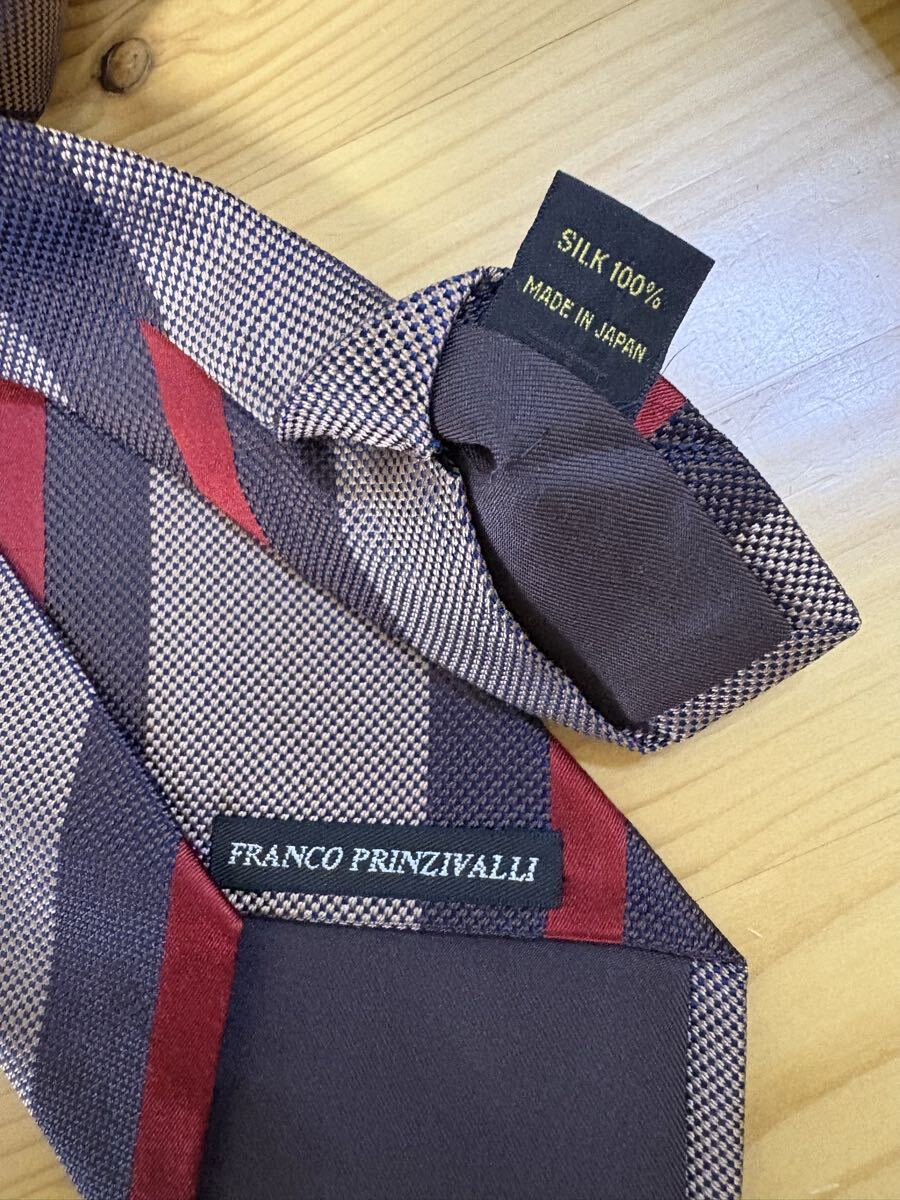 【美品】FRANCO PRINZIVALLI 日本製シルク100% ブラウン基調ストライプネクタイ 大剣約9cm