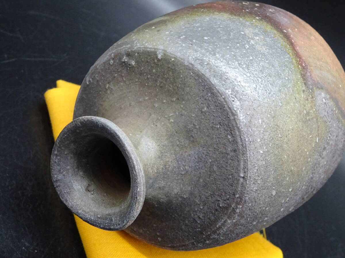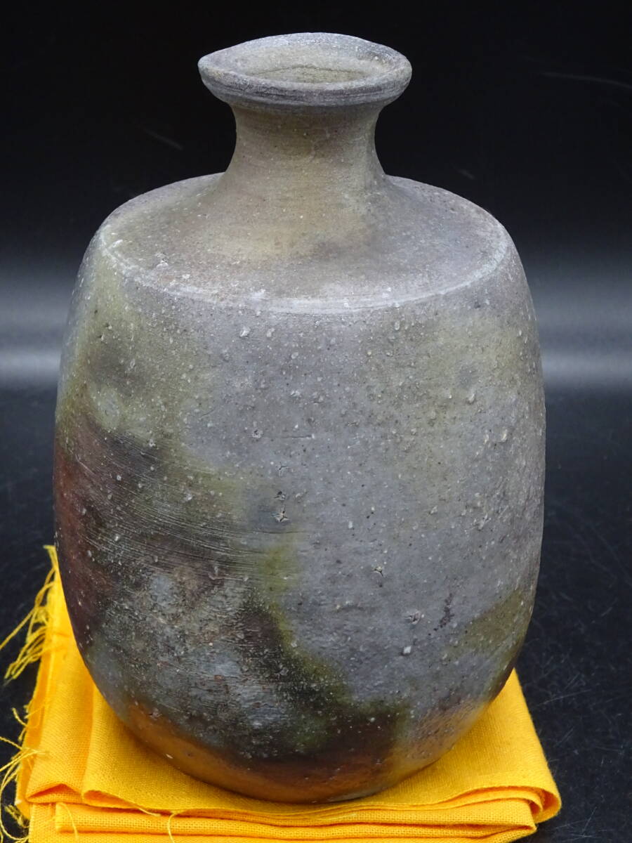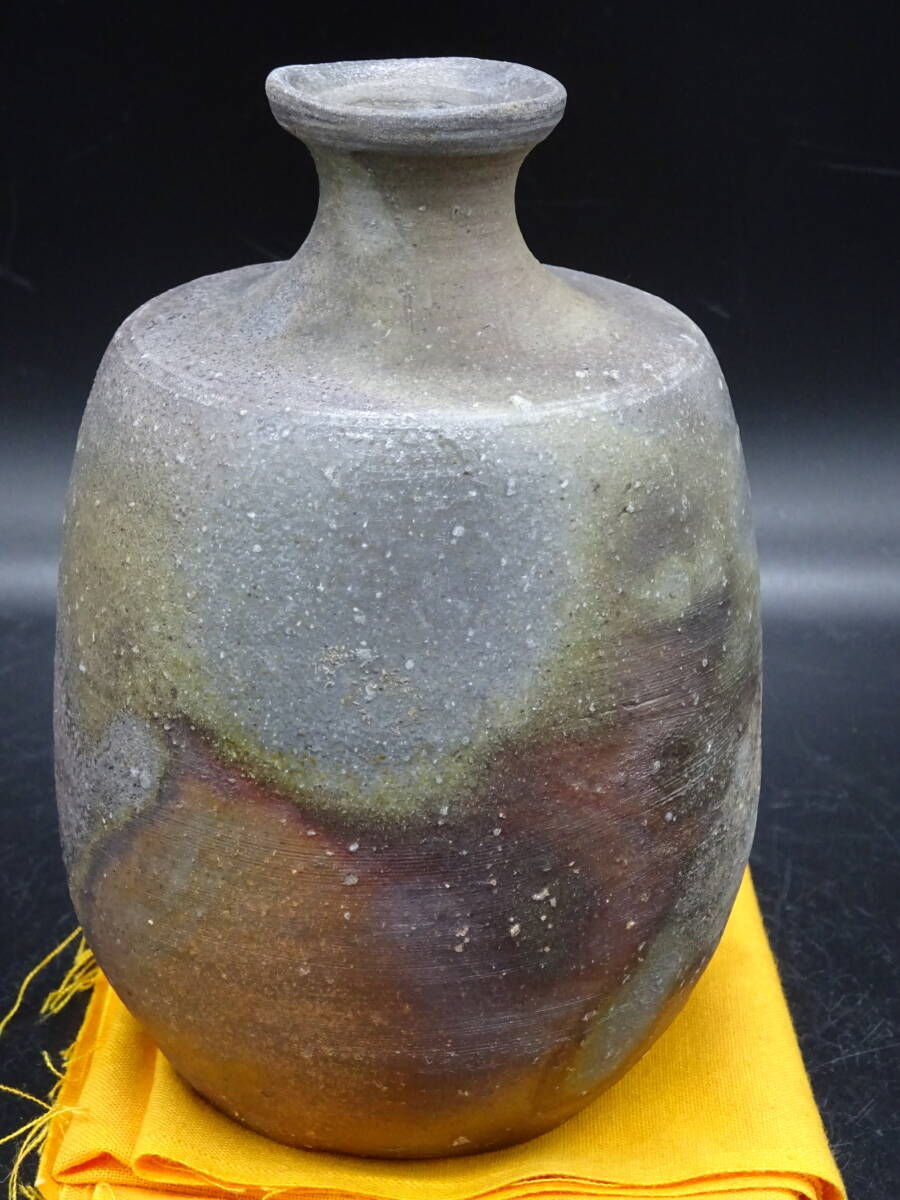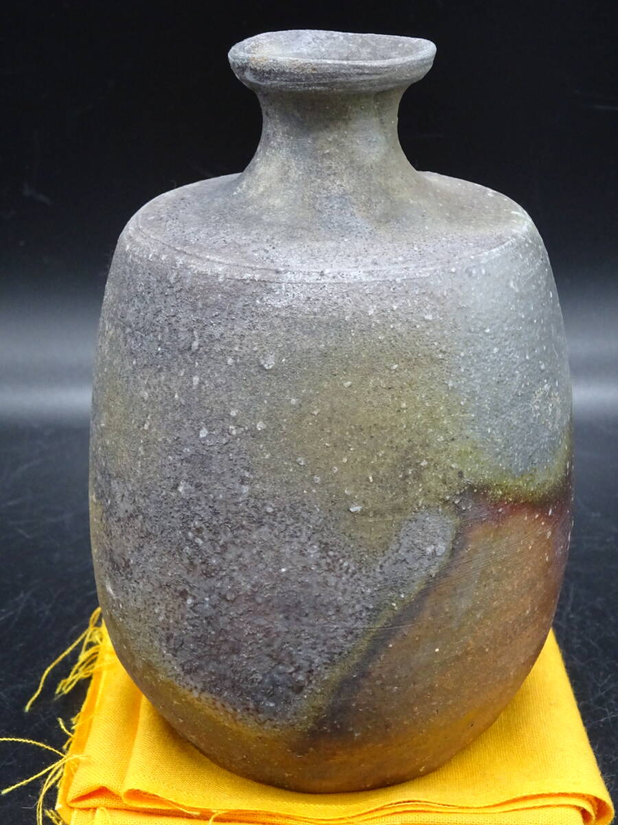 備前焼 人気実力作家 名工西川政美(師:人間国宝金重陶陽)伝統工芸士★備前窯変徳利 共箱(正彦識)、共布、陶歴付 茶道具