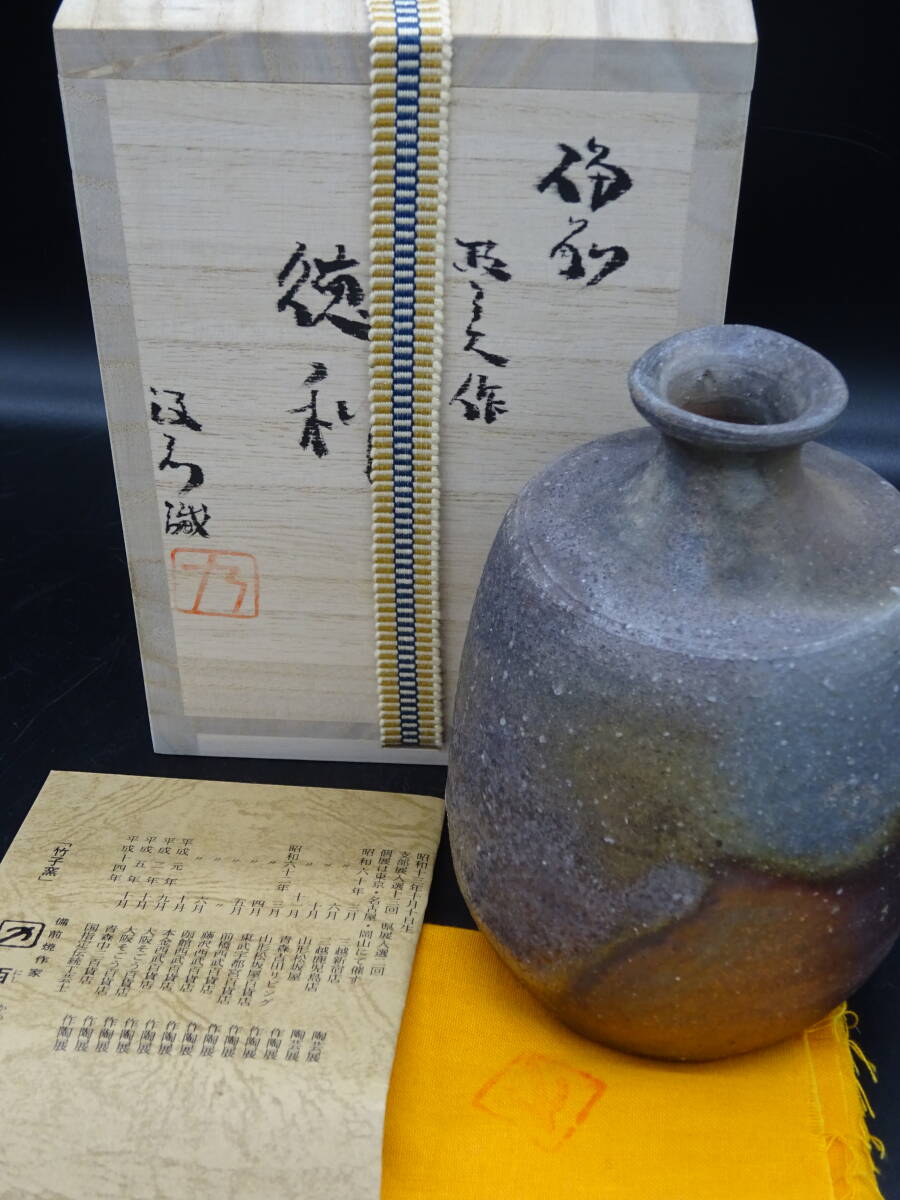 ●備前焼の名工伝統工芸士で人気実力作家 西川政美(師:人間国宝金重陶陽、直弟子)さんの 備前窯変徳利です。●共箱(正彦識)、共布、 陶歴がついています。