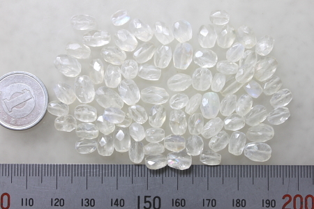 ブルームーンストン、95キャラット(貫通穴あき、オーバルファセットビーズ)