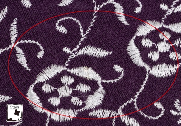 コンディション | 透け感があります。刺繍部にシミがあります(写真参照)その他目立ったシミ、汚れ、ほつれ等なくいい状態です。クリーニング済み。 |