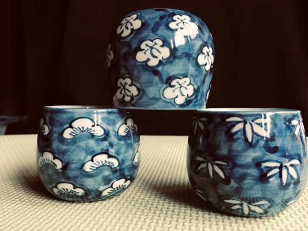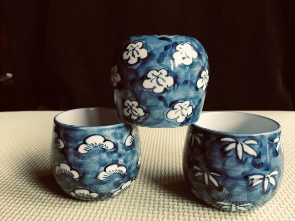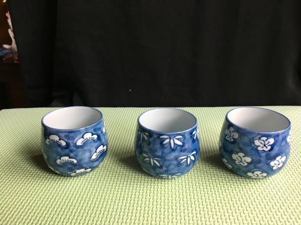 館林源右衛門窯 古染付 松竹梅湯呑 3客 参考価格10,692円