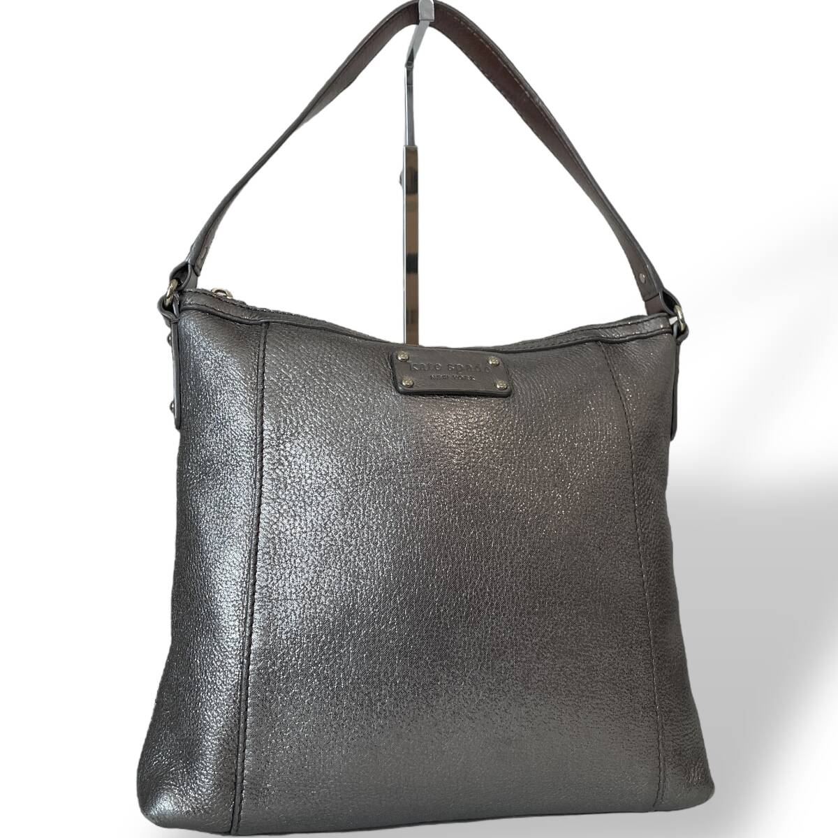 【超激レアモデル】kate spade ケイトスペード オールレザー シルバー ロゴ ハンドバッグ ワンショルダーバッグ トートバッグ 肩掛け可