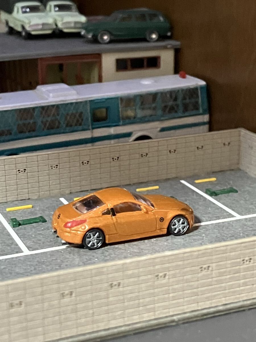 河合商会 NISSAN Z33 フェアレディZ ローダウン車 1/150 サンセットオレンジ 希少 もともとローダウン仕様ですのでタイヤは固定されていません。トミーテック製に比べ造りが精密でマフラーも色分けされてます。ヘッドライトもボディー一体化ではなく別パーツが使用されてます。Nゲージsize バラシ品になります。