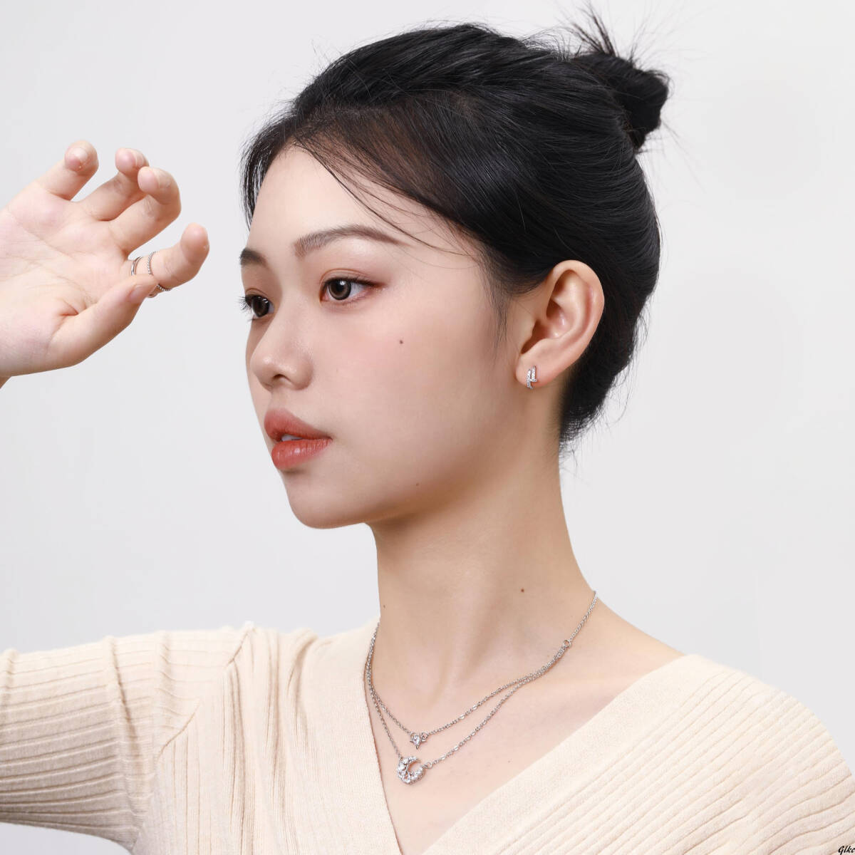華奢なデザインに散りばめられたキュービックジルコニアが、上品な輝きを放ちます。