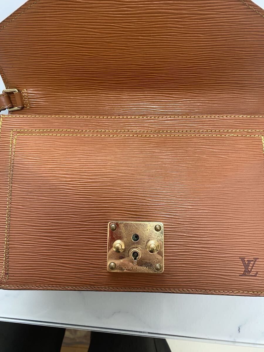 持ち手ハンドル部分のヴィトンマーク金具両面に変色、青サビあり(画像6)