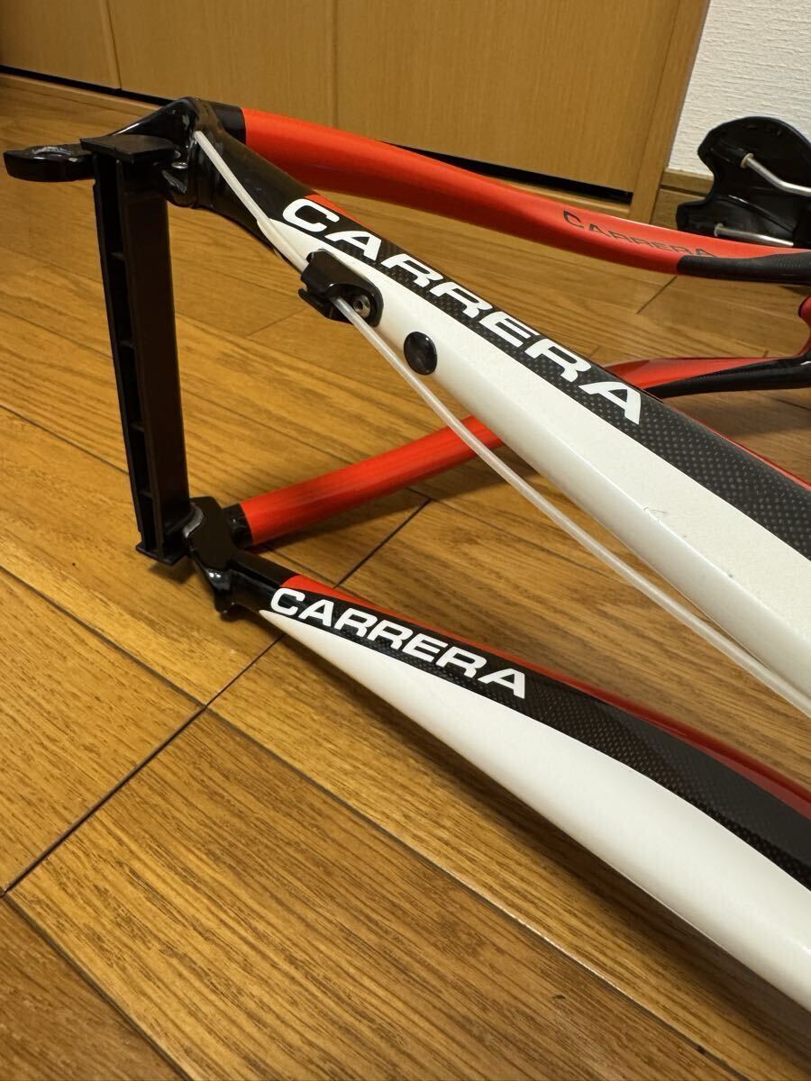 昨年度、中古フレームを入手組み上げて今夏まで元気に走っていました。特異なフレームデザインでよく走るバイクでした。先日、同型のレアカラーを見つけた為、入手して機材載せ替えたのでこちらのフレームがお役御免となりました。保管しておこうか迷いましたが、あと2台あるので流石に置場に困り、放出する事にしました。