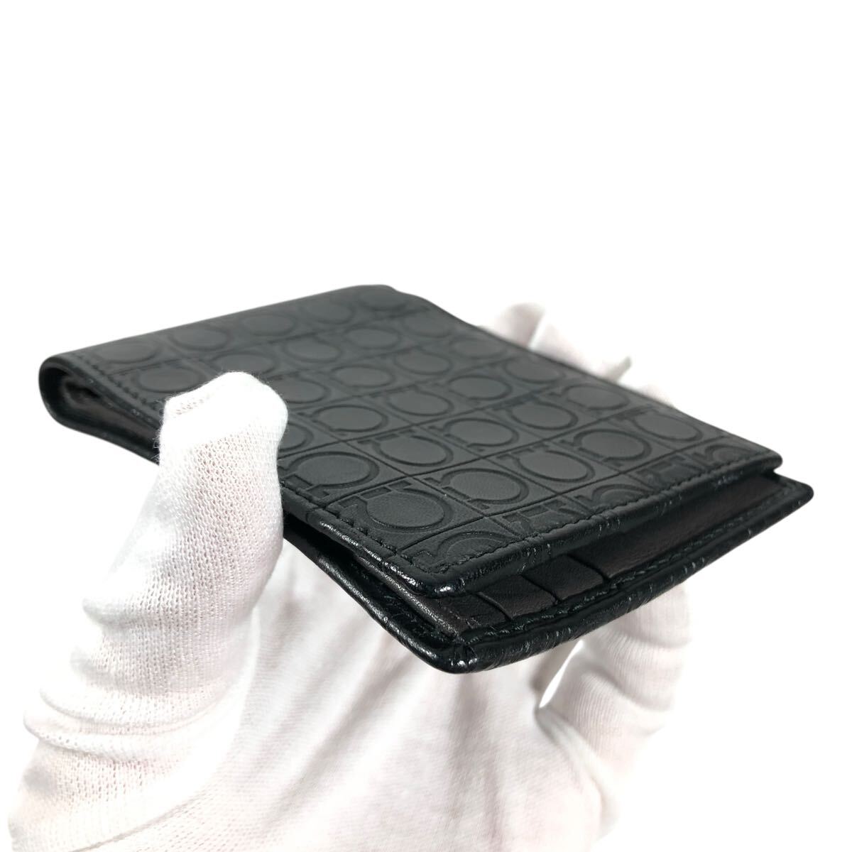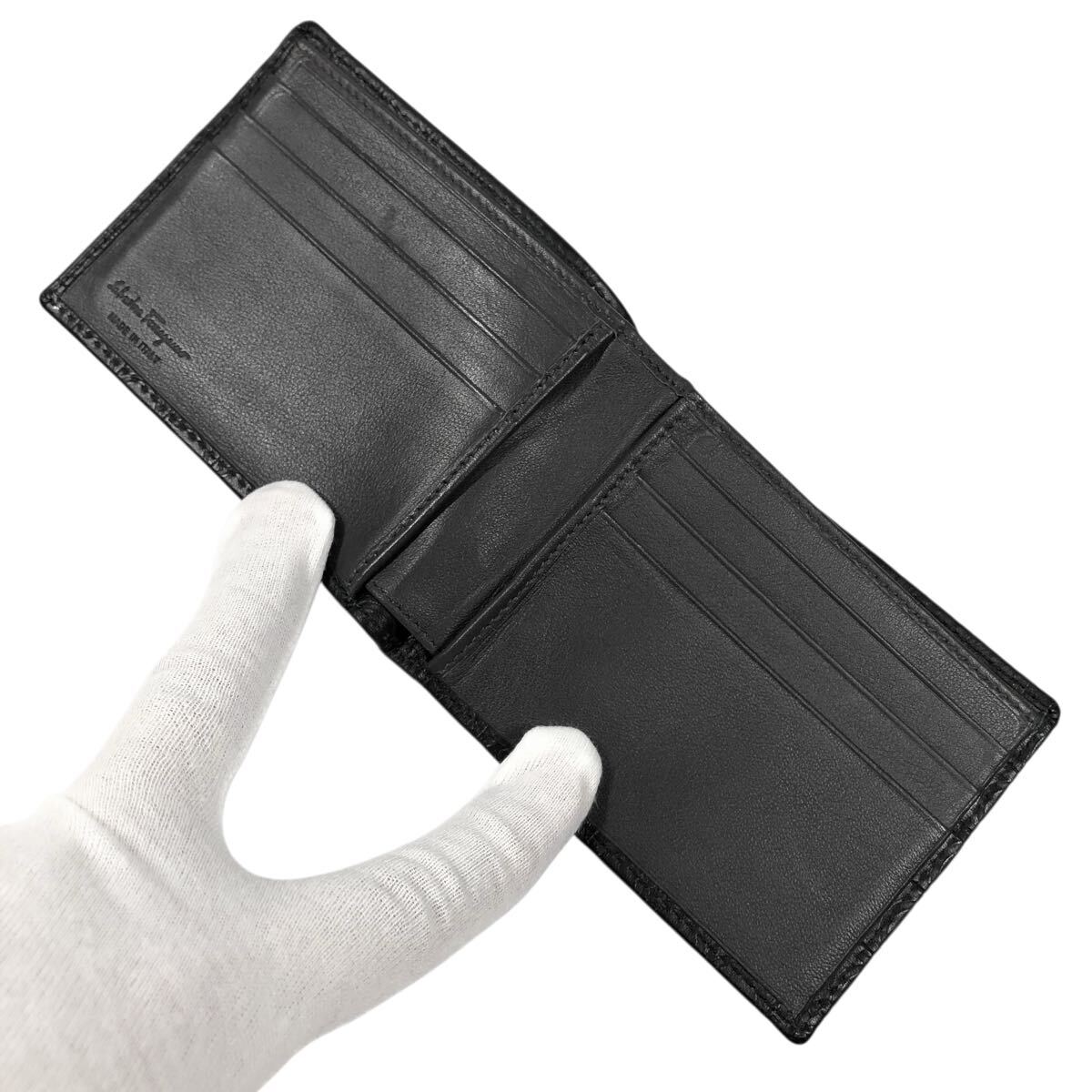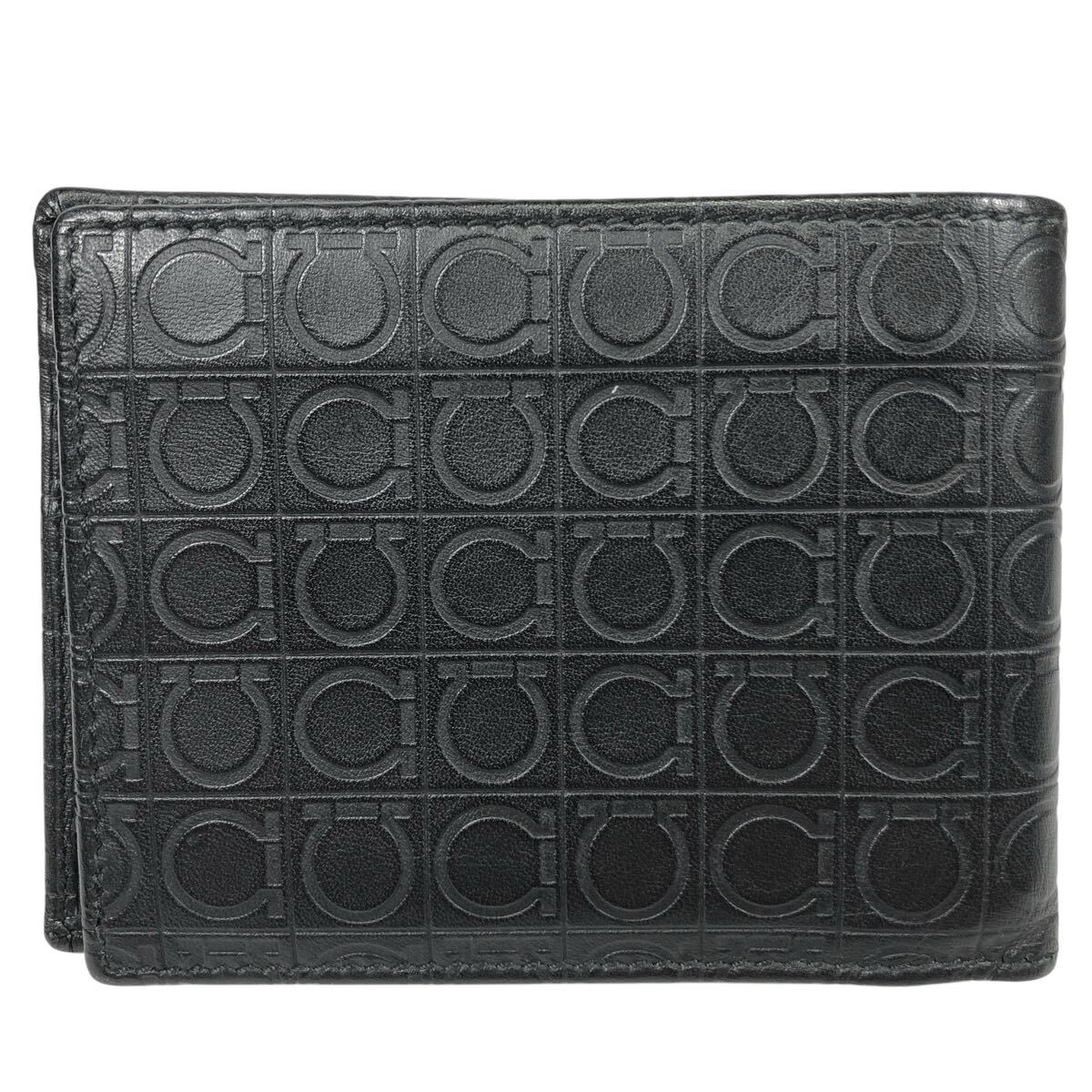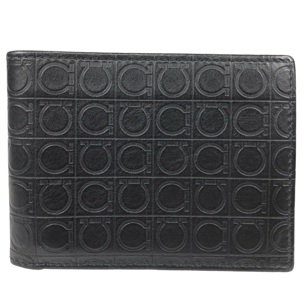 良品【フェラガモ】本物 Ferragamo ガンチーニ 二つ折り財布 2つ折り財布 本革 レザー 男性用 メンズ イタリア製