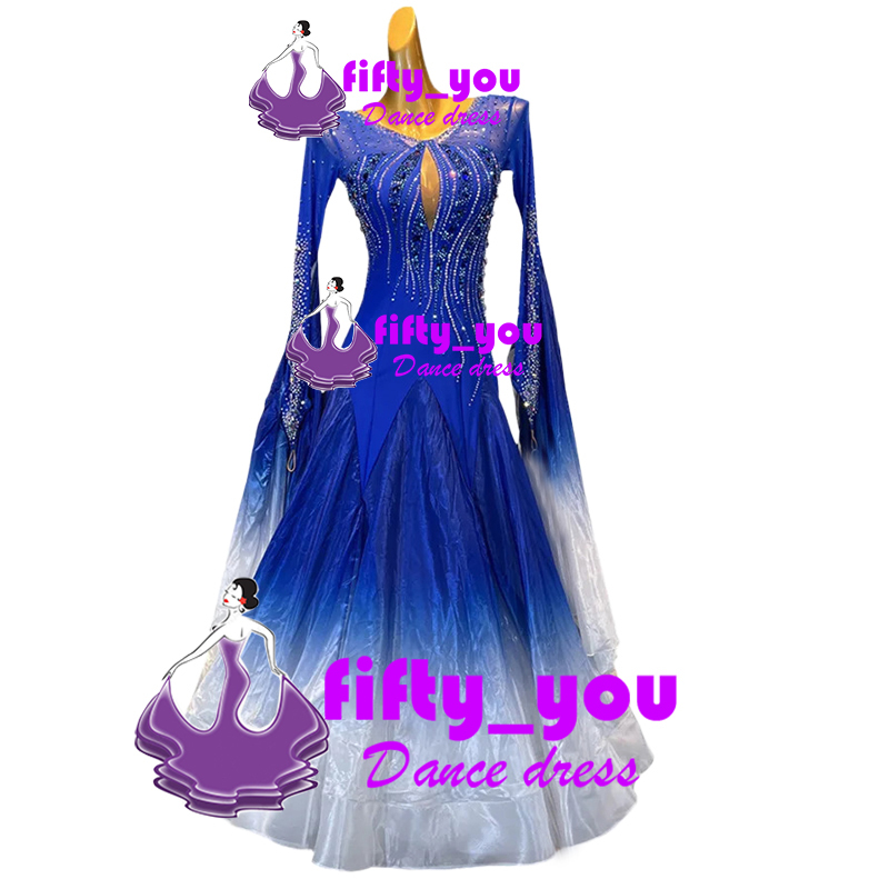新品fifty_youレディース社交ダンス衣装  モダンドレス セミオーダー 競技高品質ドレス スタンダードドレス  上品グラテーション色