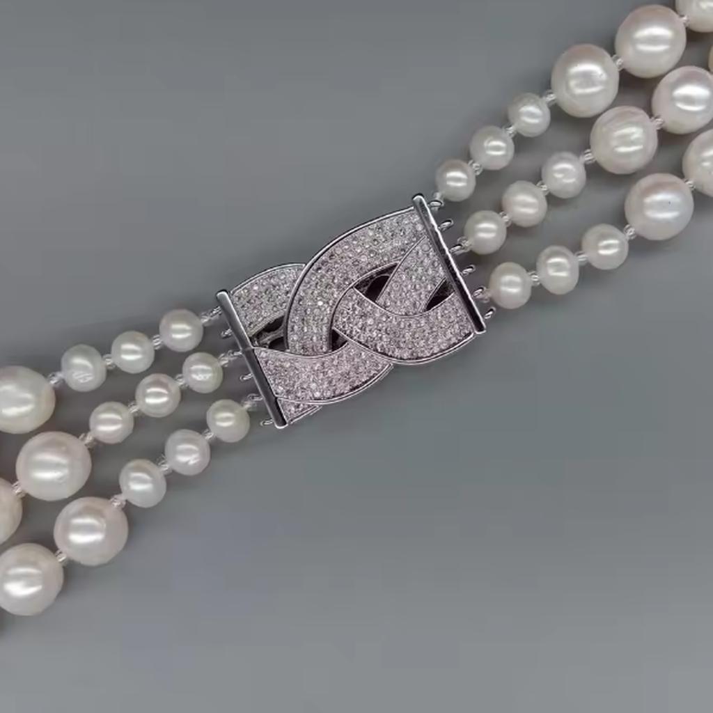 素材:淡水養殖パール(6.5-10mm)、キュービックジルコニア、ホワイトゴールドプレーティッド