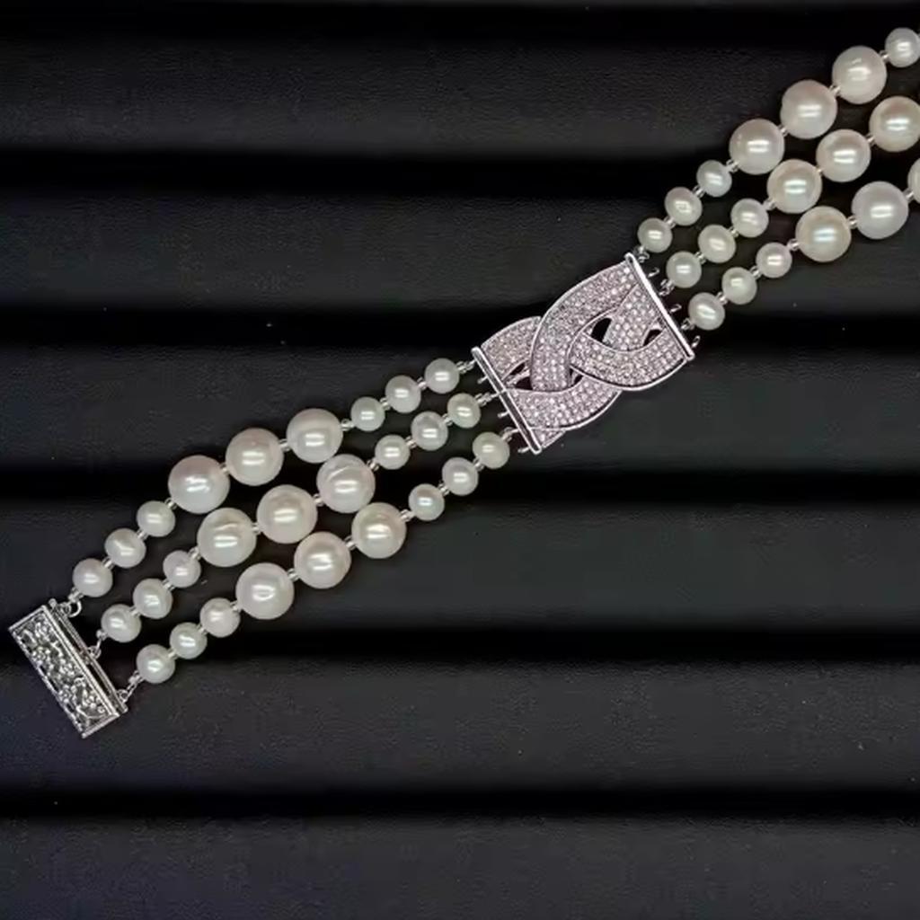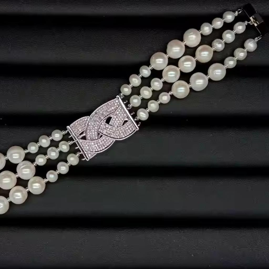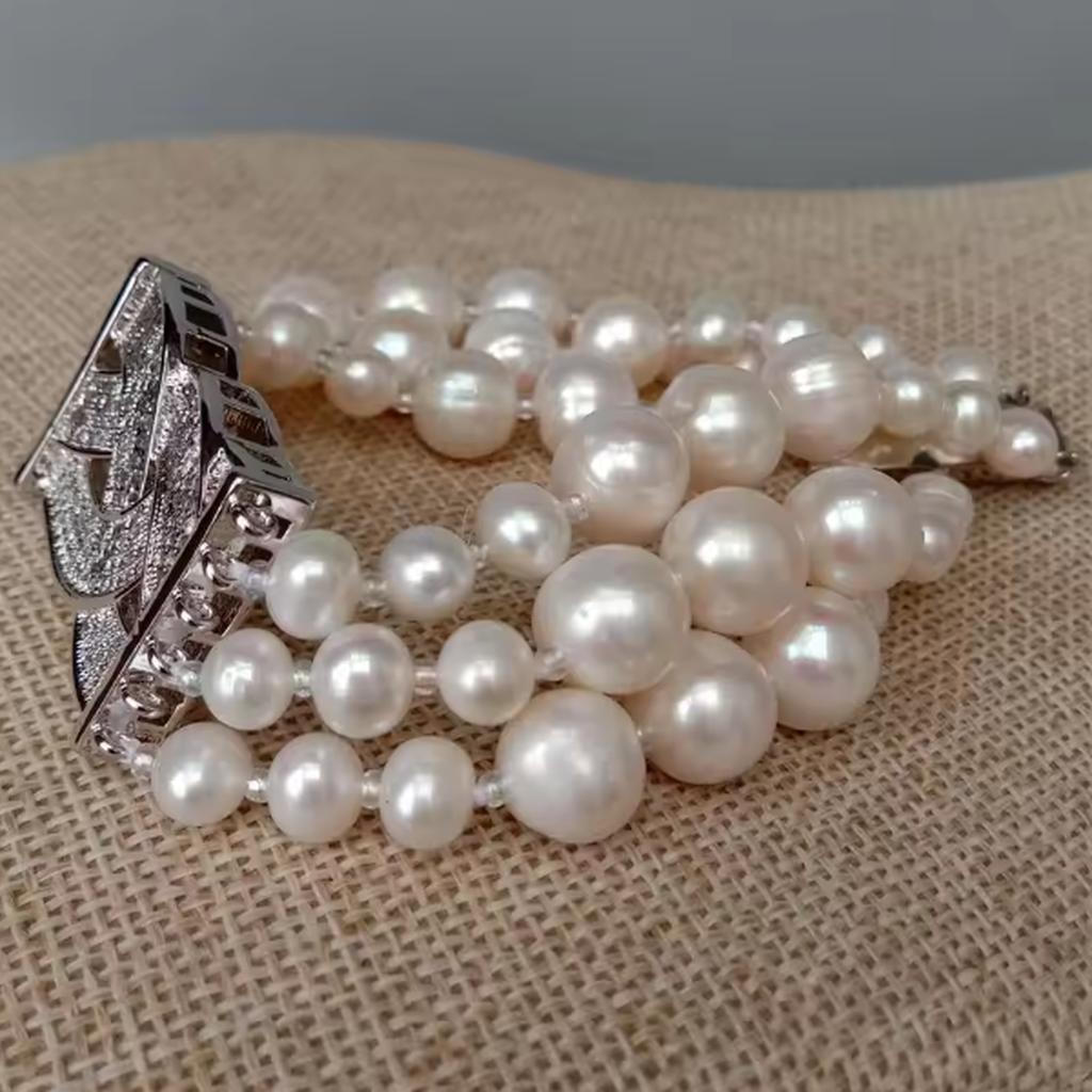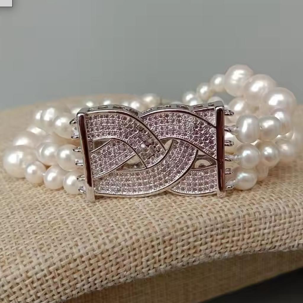 <新品>ホワイト 淡水養殖 パール 真珠 キュービックジルコニア ブレスレット 結婚式 ダンス パーティー プレゼント