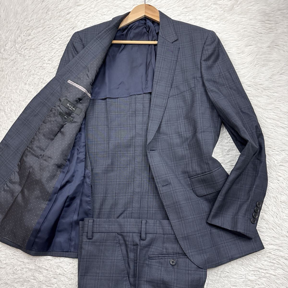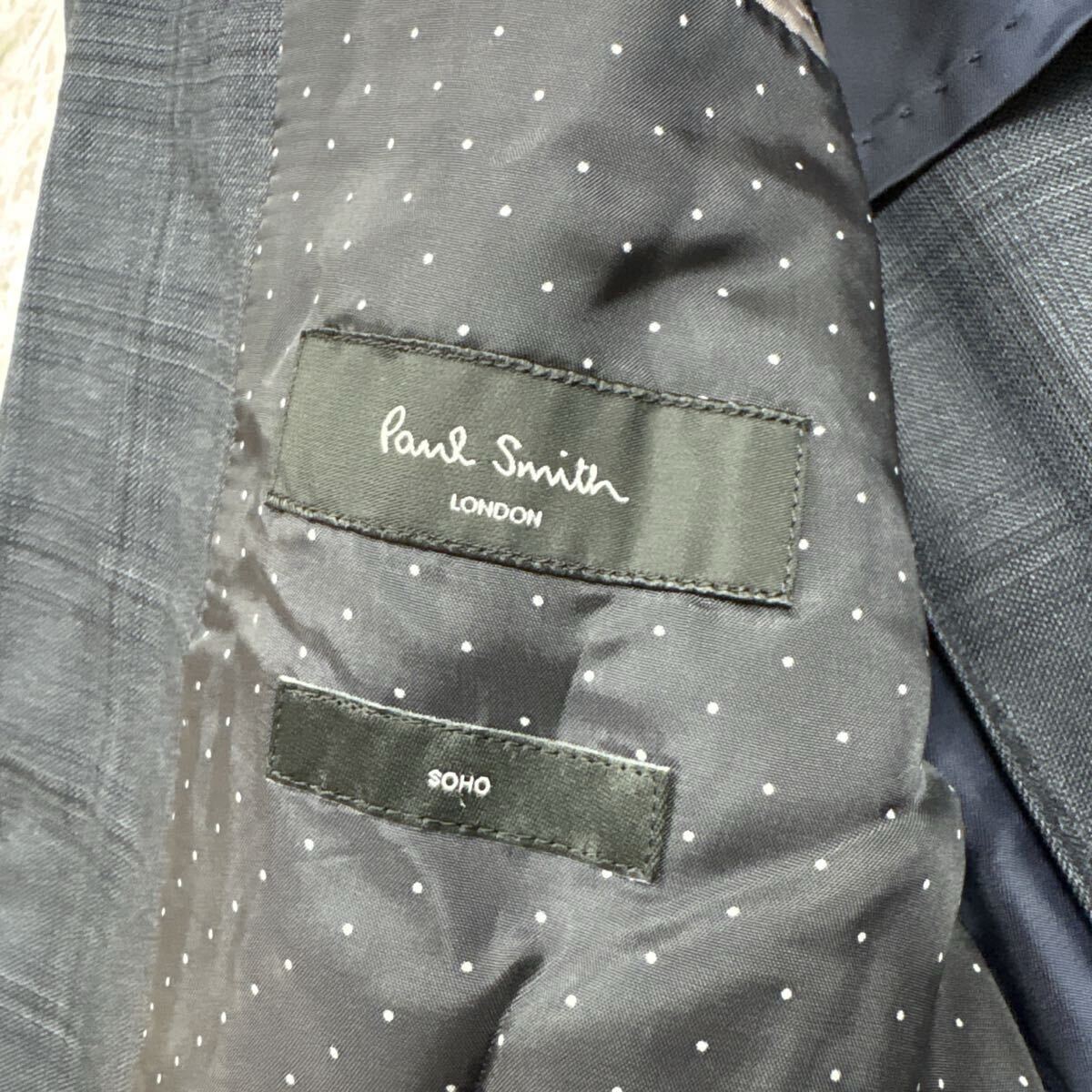 現行 Paul Smith ポールスミス SOHO セットアップ スーツ シルク ドット柄 背抜き 濃紺 ネイビー チェック メンズ2B