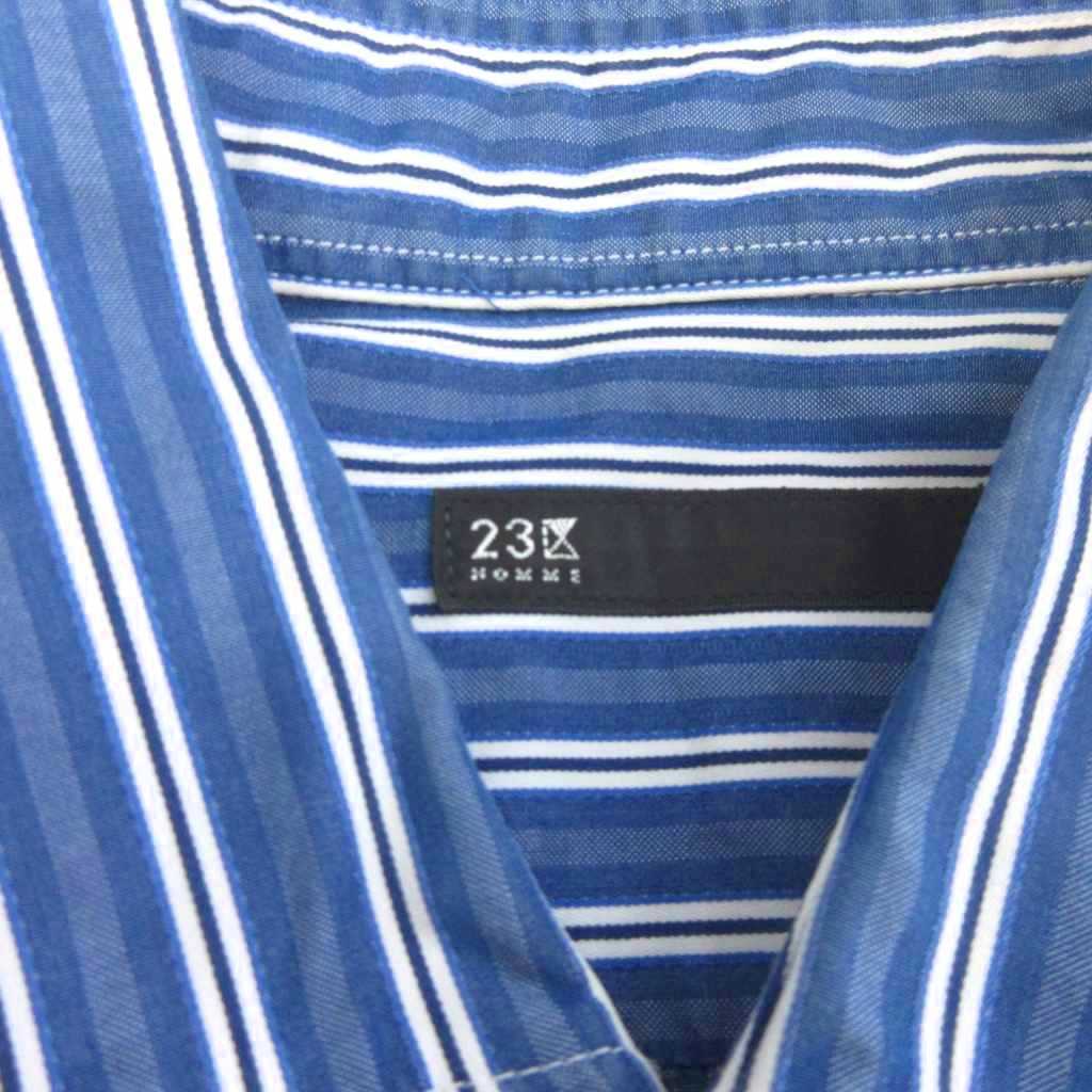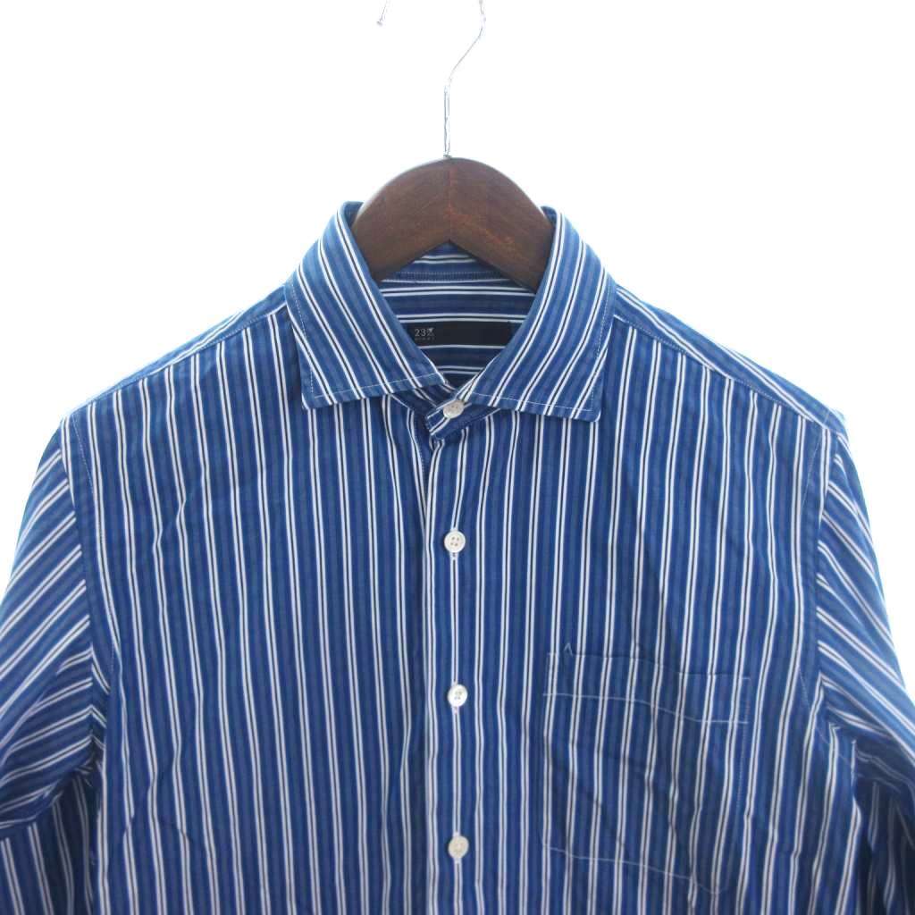 23区 オンワード樫山 美品 シャツ 長袖 ストライプ コットン 青 ブルー 46 メンズ