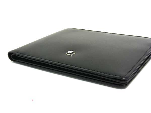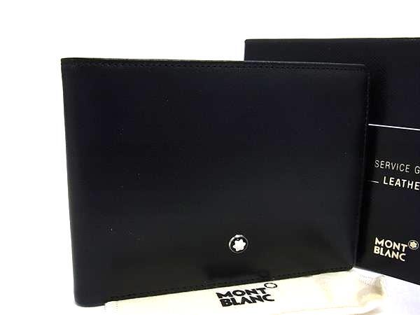 ■新品同様■ MONT BLANC モンブラン レザー 二つ折り 財布 ウォレット 札入れ カード入れ メンズ レディース ブラック系 BN5393