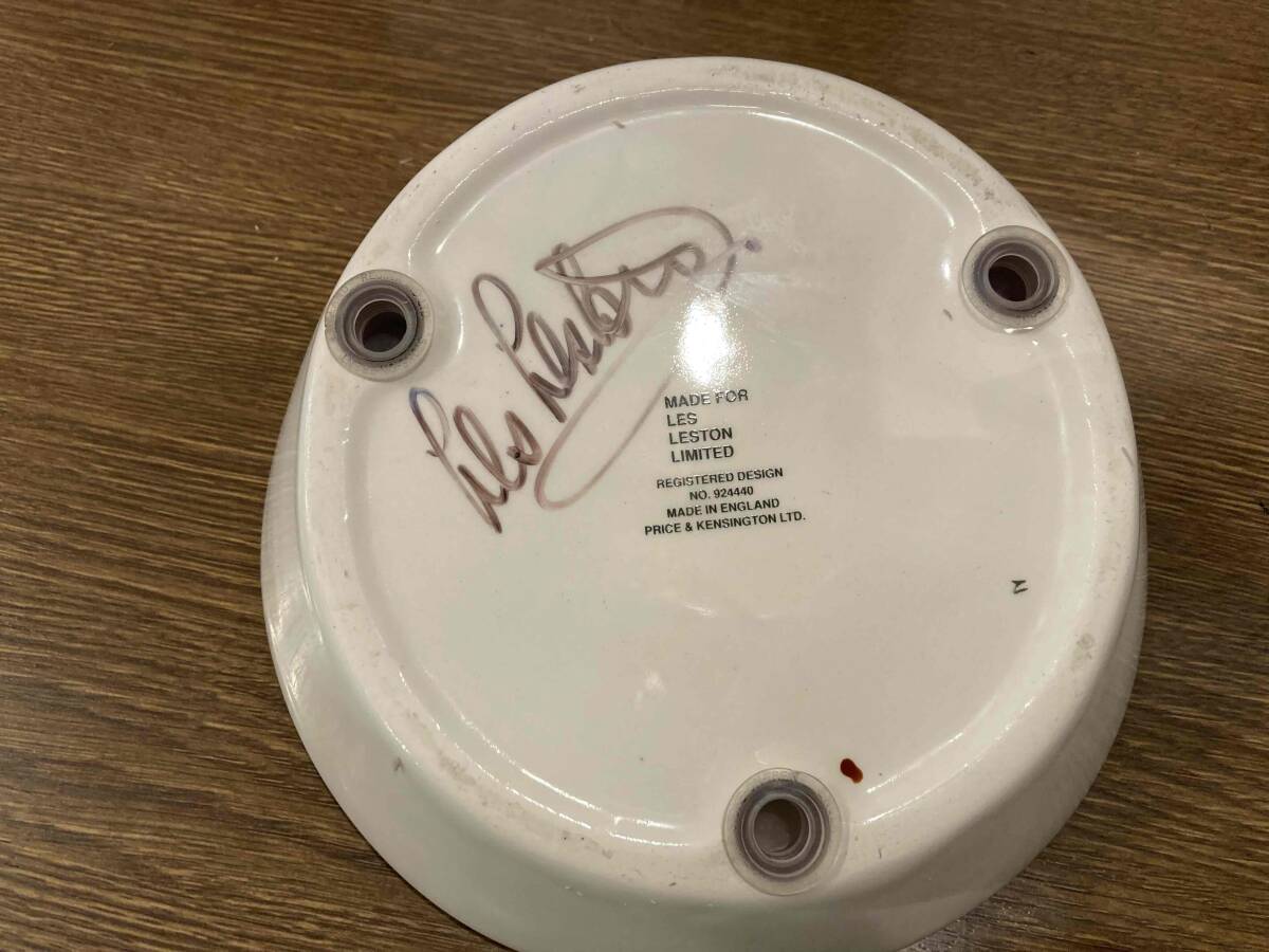 レスレストンサイン入り ステアリングデザイントレイ 灰皿 陶器製