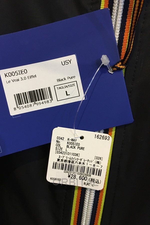 ケイウェイ K-WAY 未使用 K005IE0 エッフェル パッカブルレインコート Eiffel ナイロン 定価28,600円 ブラック メンズ L