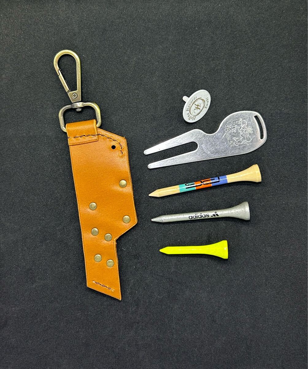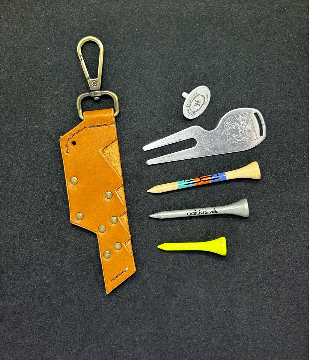 ハンドメイド(手作り)のゴルフティー・ゴルフボールマーカー・グリーンフォークのホルダーケースです。