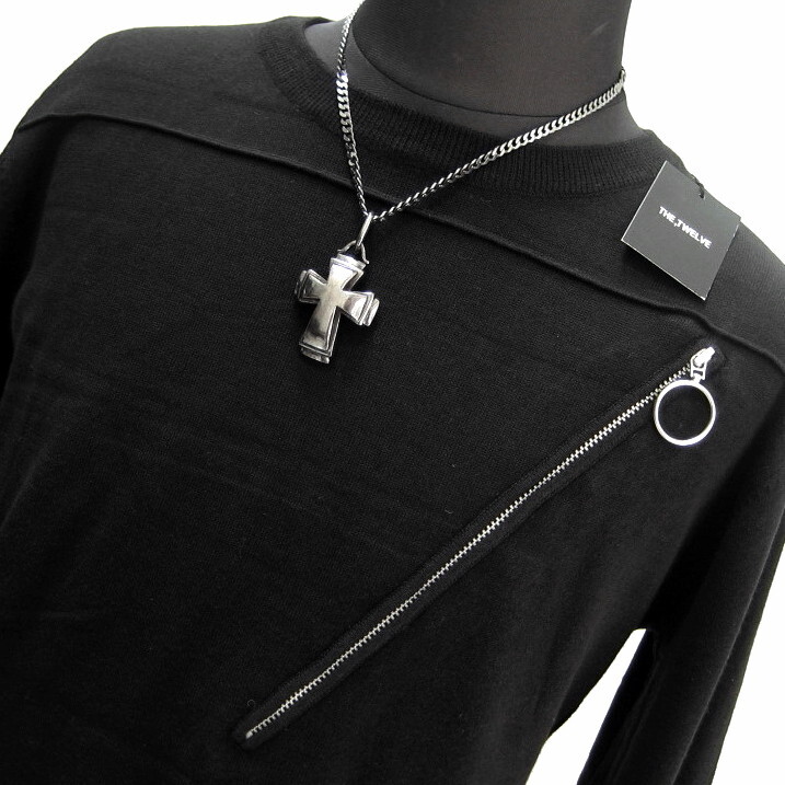 1.9万 新品 48 THE TWELVE ザ・トゥエルヴ コットンクルーネックニット長袖 ブラック 送料無料 サンプル 415
