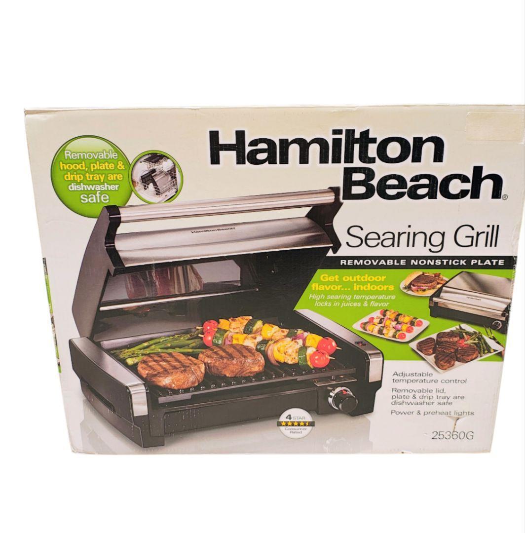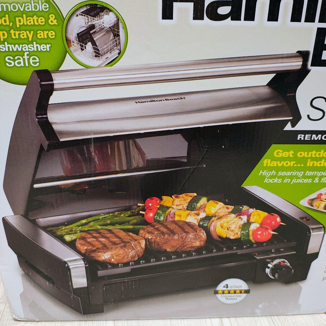 HamiltonBeach電気インドア用シアリンググリル温度調節機能付き450°F(約232℃)まで調節可能取り外し可能なノンスティック格子118平方インチ表面6人用ステンレススチール