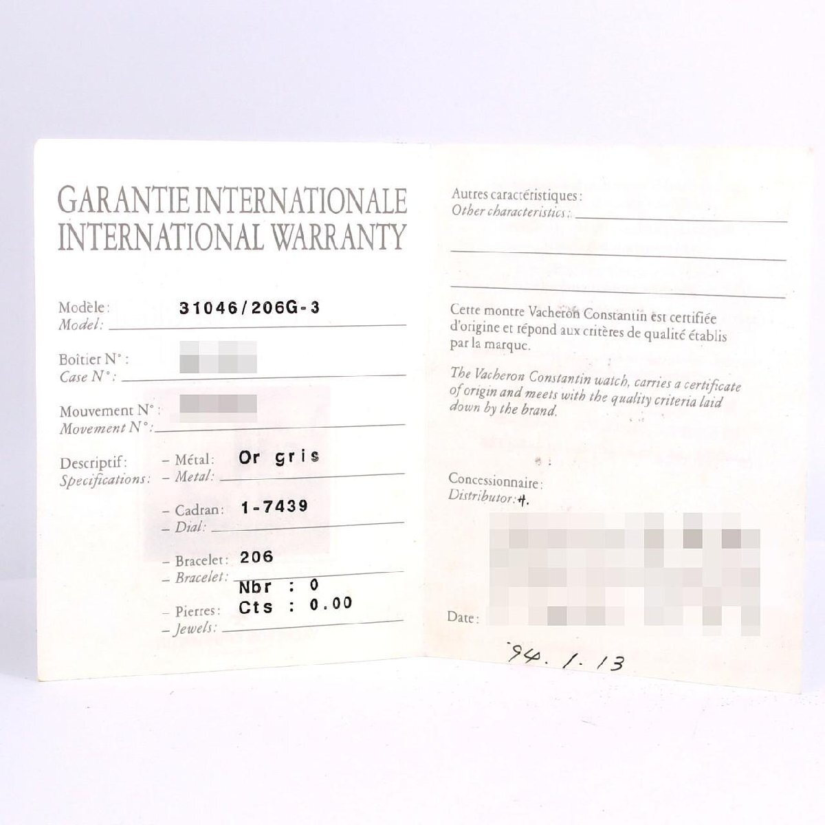 商品名 | ヴァシュロン・コンスタンタン メッシュドール WG 31046/206G-3 WG 手巻 |