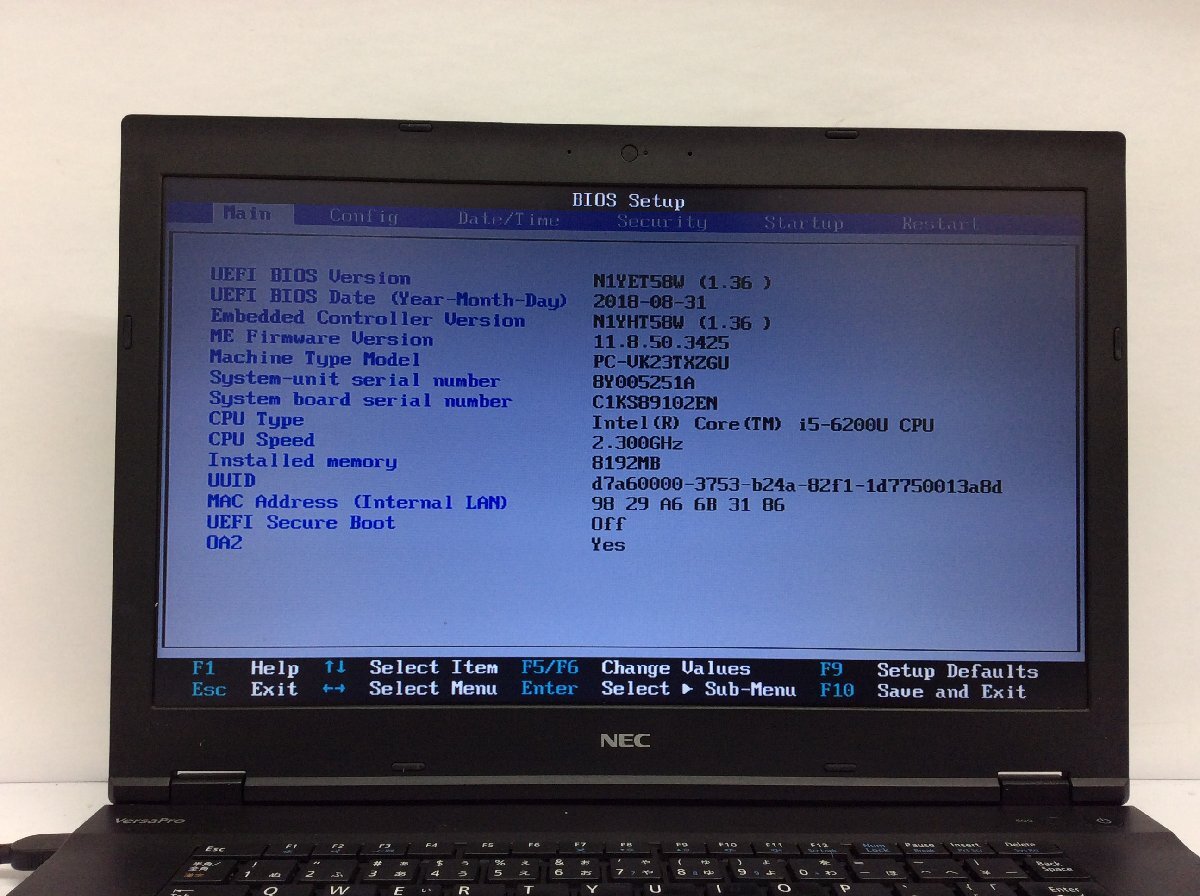 ジャンク/ NEC PC-VK23TXZGU Intel Core i5-6200U メモリ8.19GB ストレージ無し 【K21031】