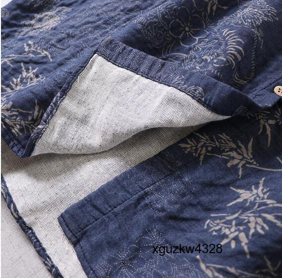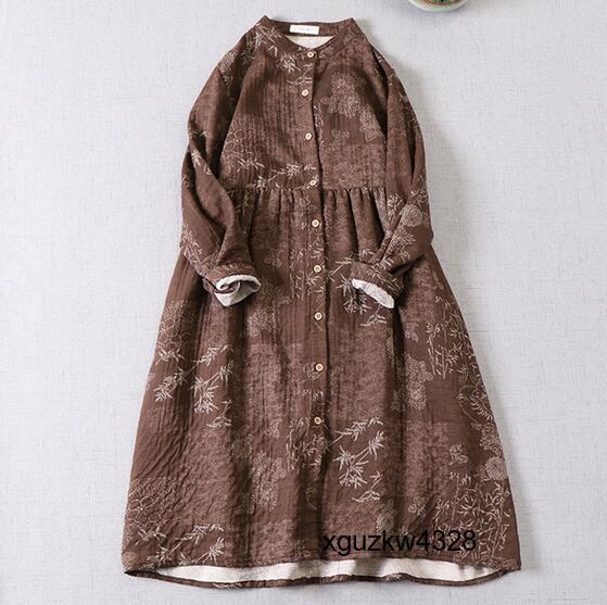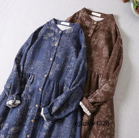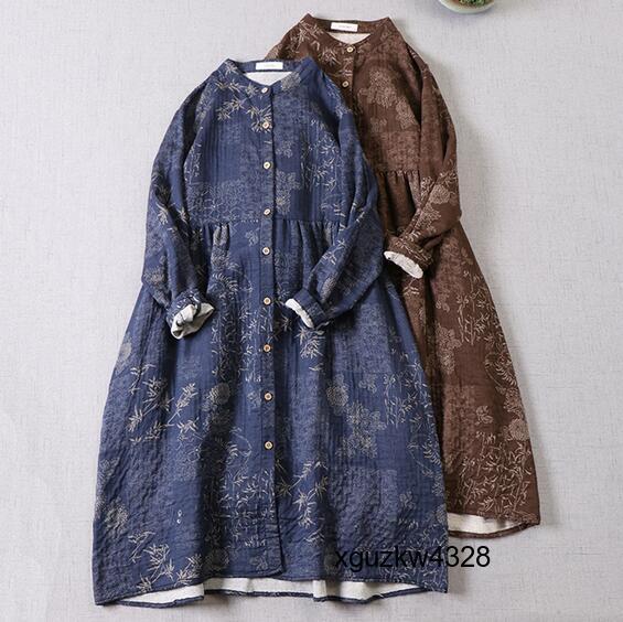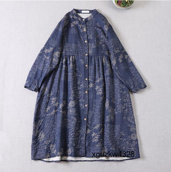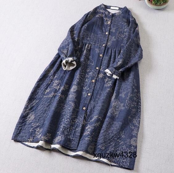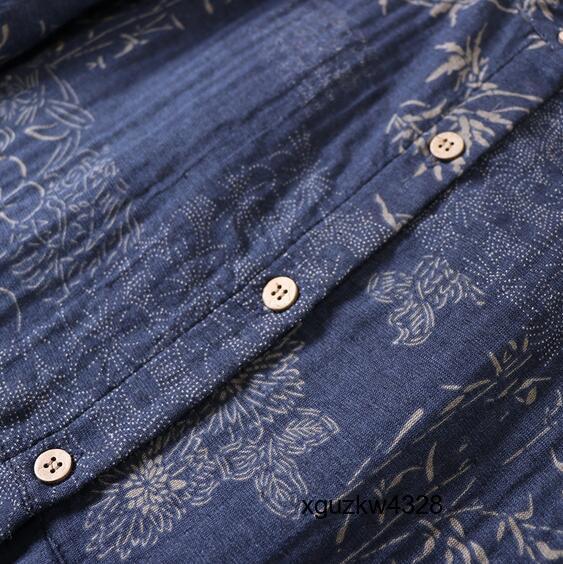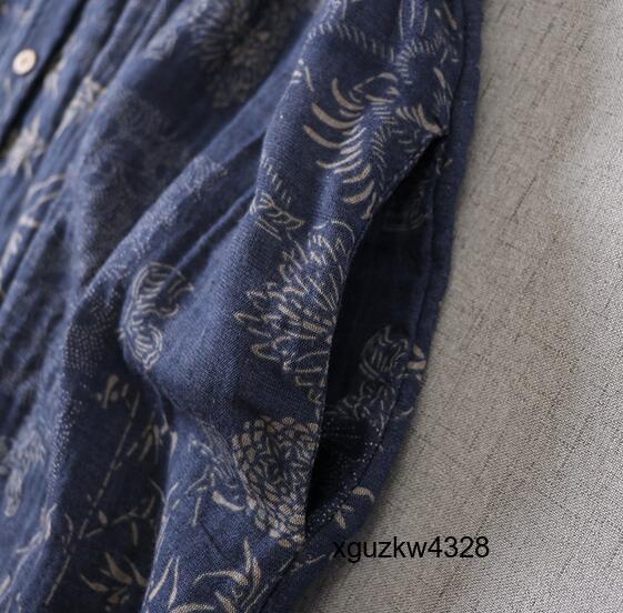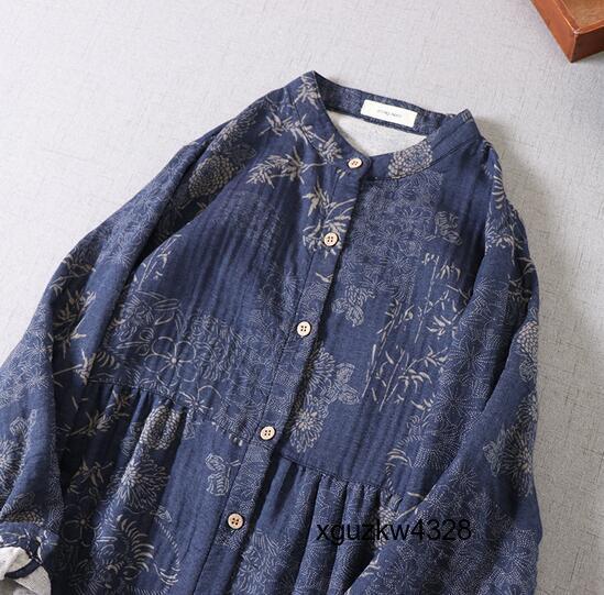 人気品レディース トップス ワンピース チュニック 綿コットン ダブルガーゼ落ち着く 上品な柄 柄 紺色 シャツワンピース