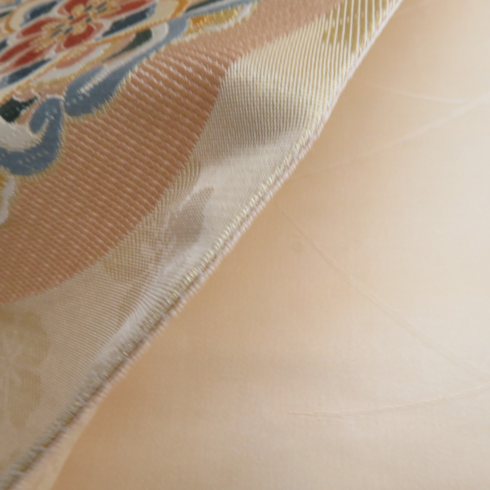 | 袋帯 正絹 金糸 ゴールド系 華文様 ゴールドx多色 六通柄 フォーマル 礼装 長さ432cm |