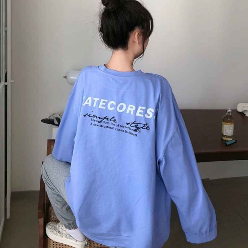 バックのロゴがとっても可愛い一着。フィットフレアパンツとの相性抜群!