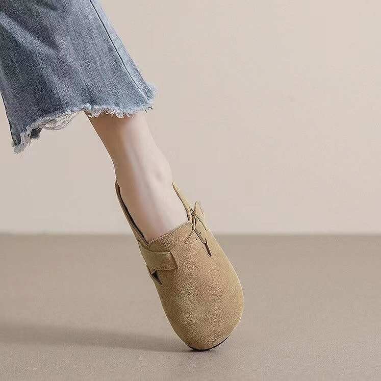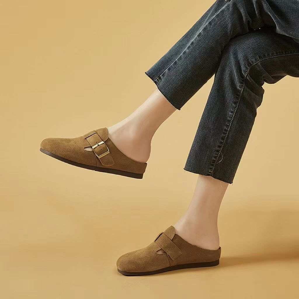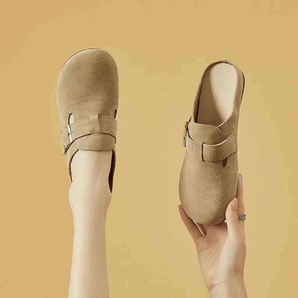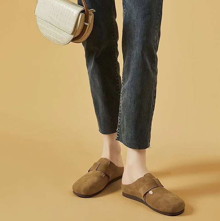 ・かかとがなく脱ぎ履きが楽ちんなデザインでリラックス感たっぷり。