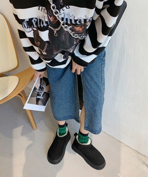 冬のニットやコートのボリュームに負けない厚底で重めな足元の完成!