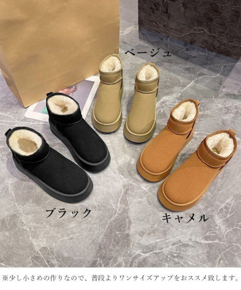 厚底ムートンブーツ 裏起毛ショートブーツ 25.0cm(40) ブラック