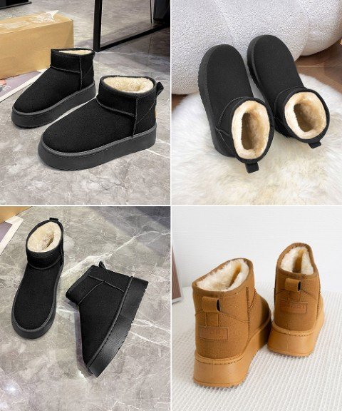 防寒ブーツもこもこ 履きやすい冬靴新作 フェイクムートン靴